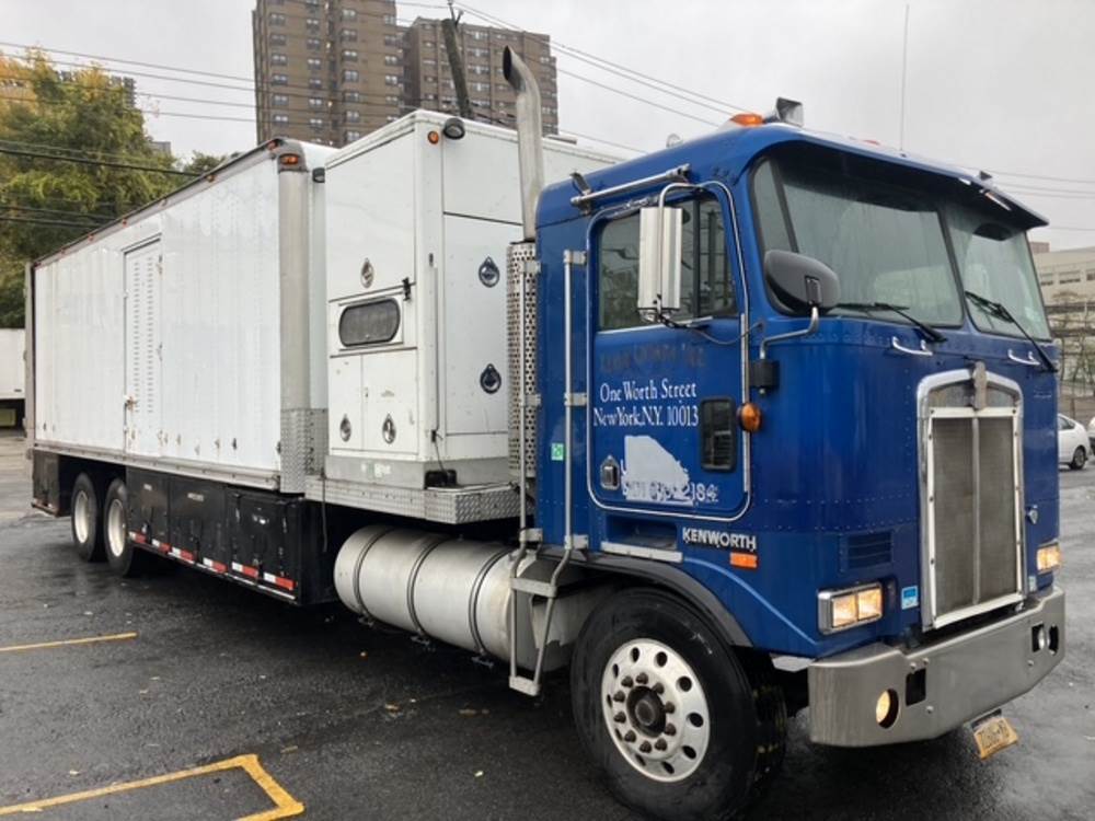 1995 Kenworth Van combination truck model K 100E COE tilt cab. VIN: 1NKELA9X0SJ380746. Odometer reading: 28445, last reported mileage 39488. With a 10.5L 6 Cyl Cummins model N14 diesel engine, manual transmission, 1400 Amp onboard movie industry generator. Seller reports: Runs, Drives, Title and key available. Please note Odometer reading discrepancy. See Carfax report.