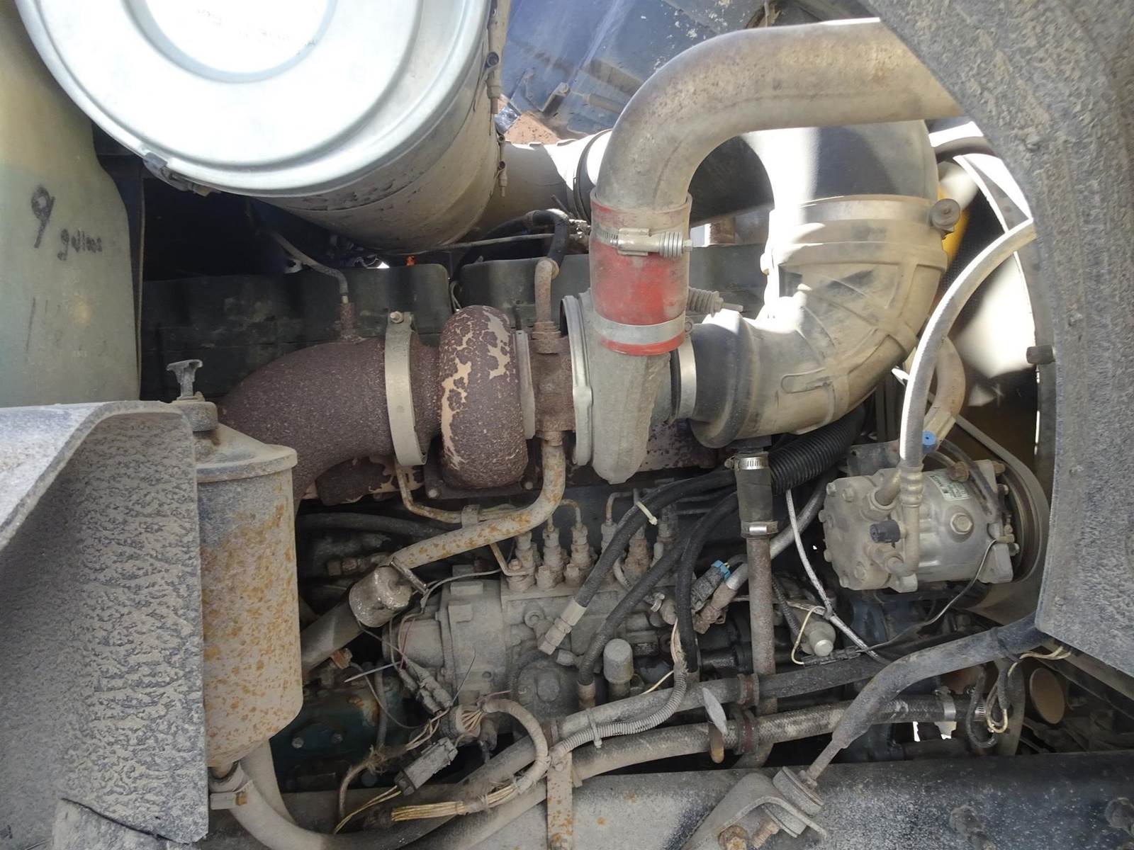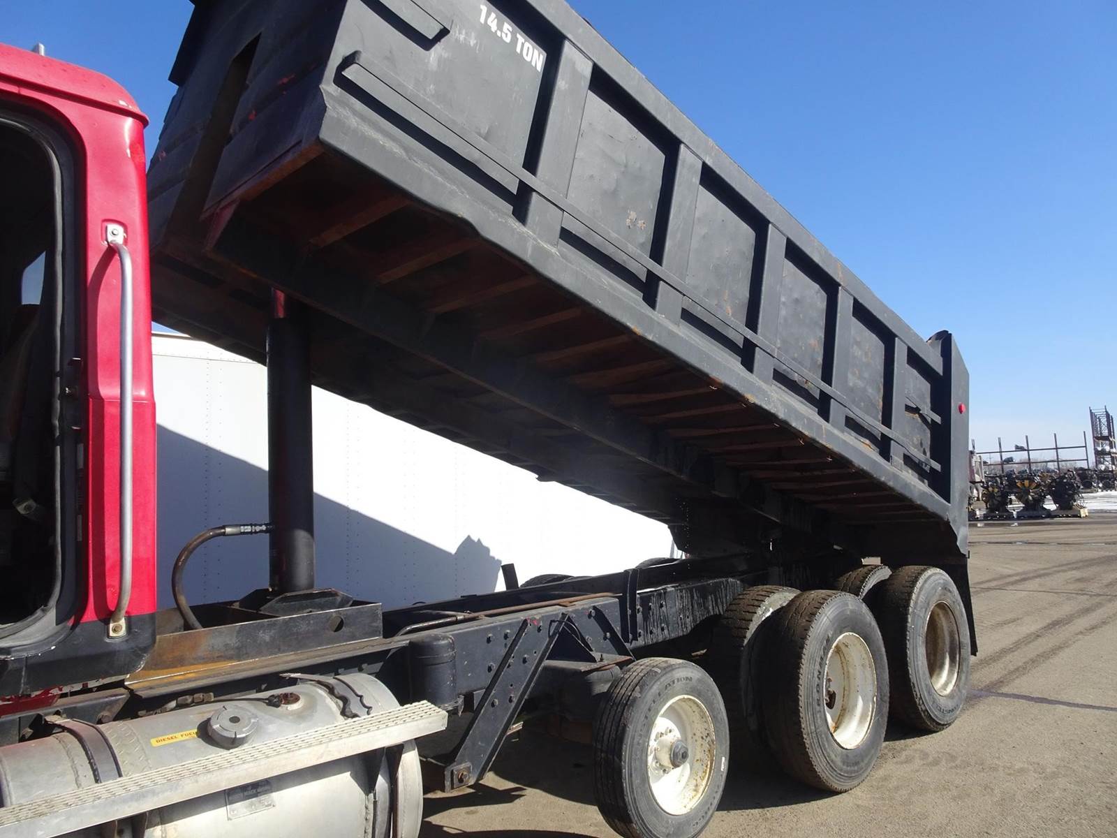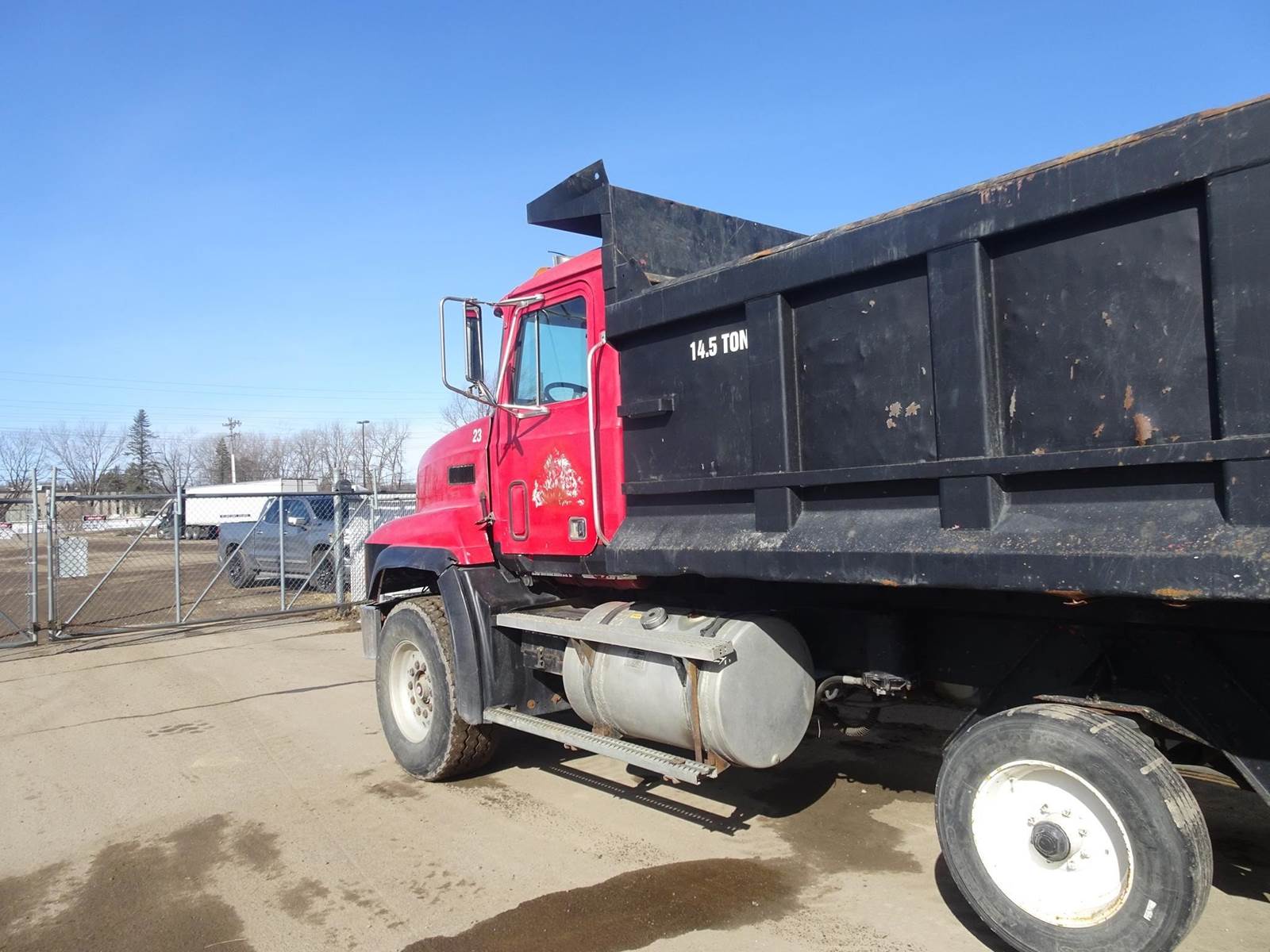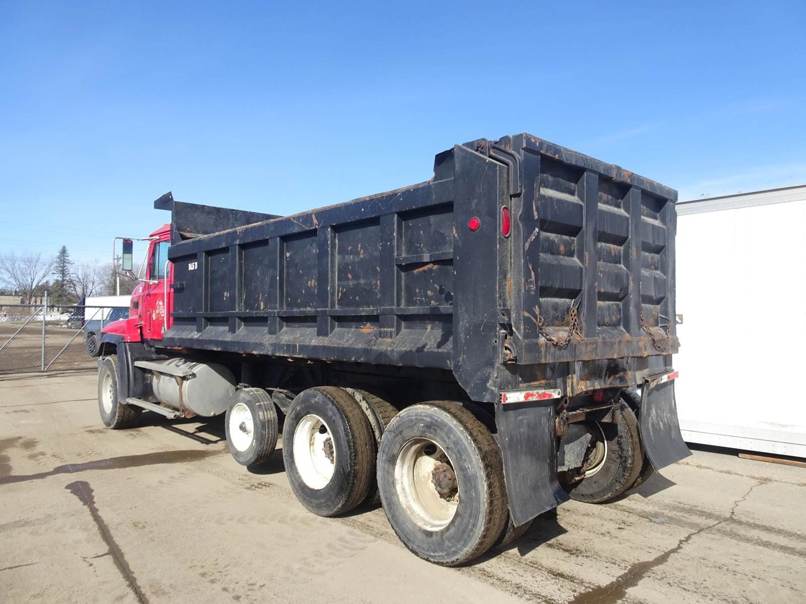 17' steel box, rigid pusher axle, mack 350 engine with jake brake, camelback spring suspension