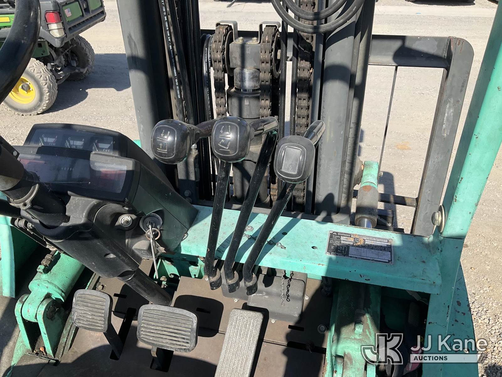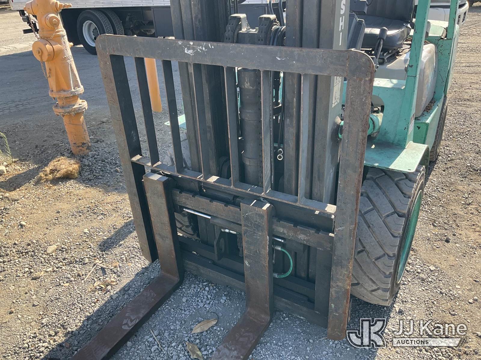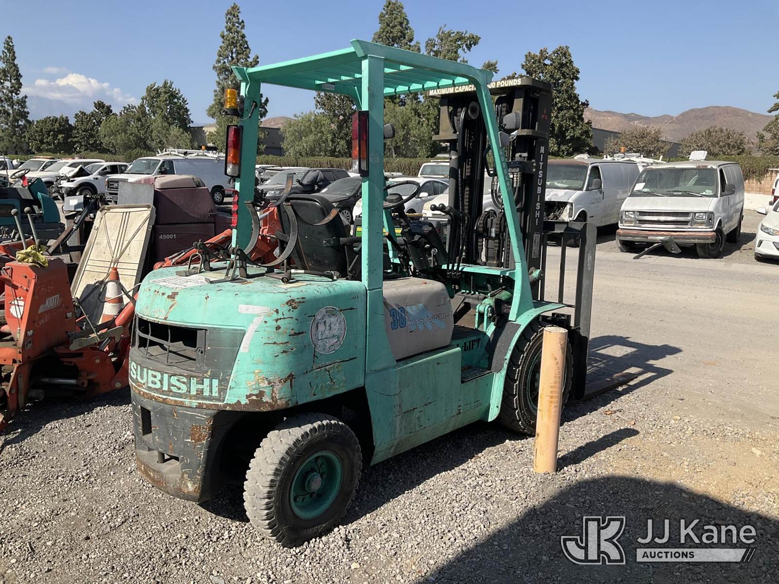 1995 MITSUBISHI FG30 Pneumatic Tired Forklift, s/n AF13D30450, 4-cyl, Dual Fuel (LPG & Gas), (Runs & Operates) (Reads 5,039 hours) NOTE: This unit is being sold AS IS/WHERE IS via Timed Auction and is located in Jurupa Valley, CA. Inspection & preview days for this unit are the 2 business days prior to the first day of items closing for this auction, item is located at 4510 Muth Way Jurupa Valley, CA 92509 and hours of operations are 8a-4p. For pre-sale questions, please contact please contact Office Staff @ (310) 353-7140. Dealer License Number 45696. (Buyer is responsible for removal. Assistance by consignor or JJ Kane Auctioneers is not assured.)