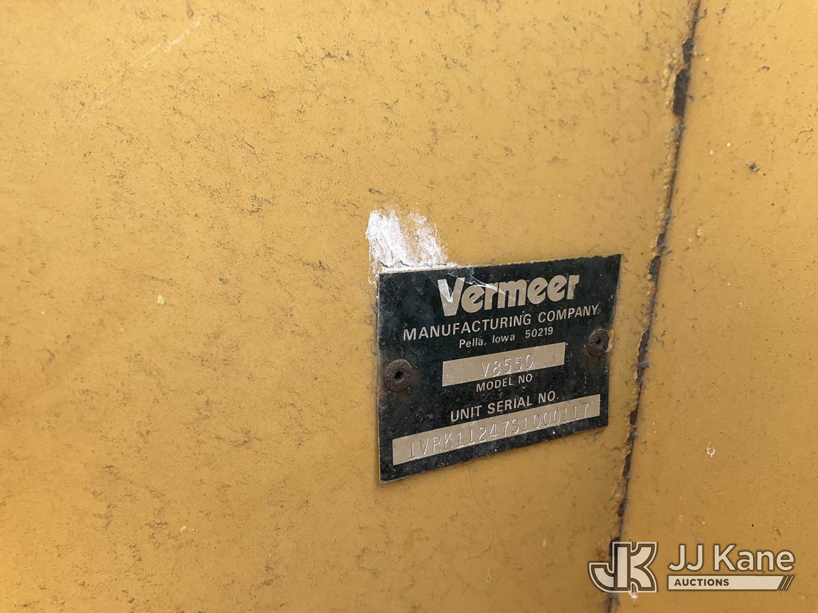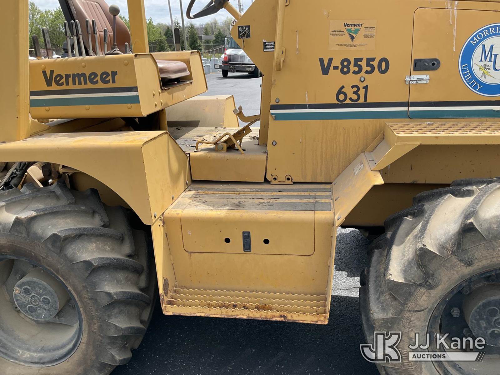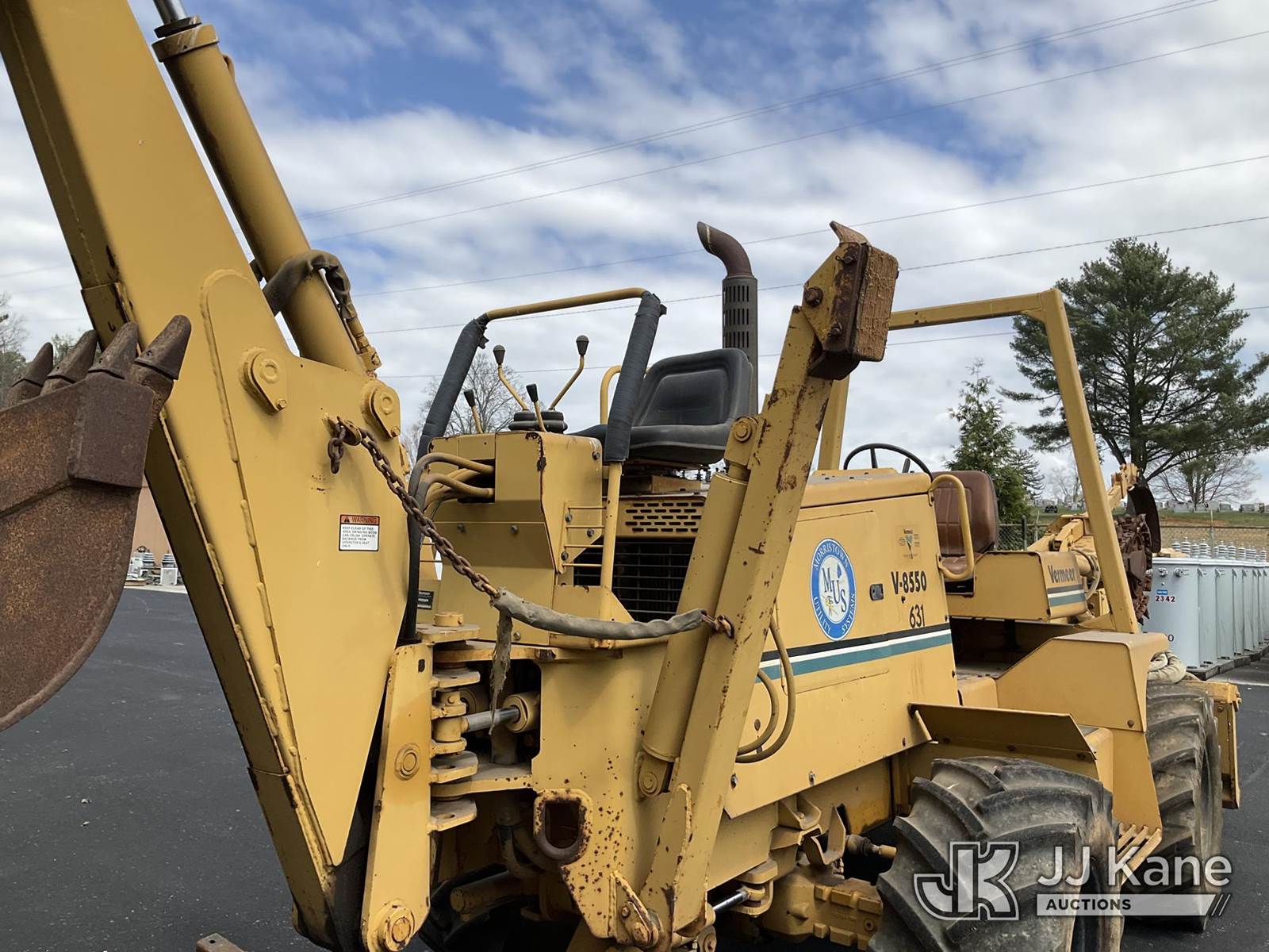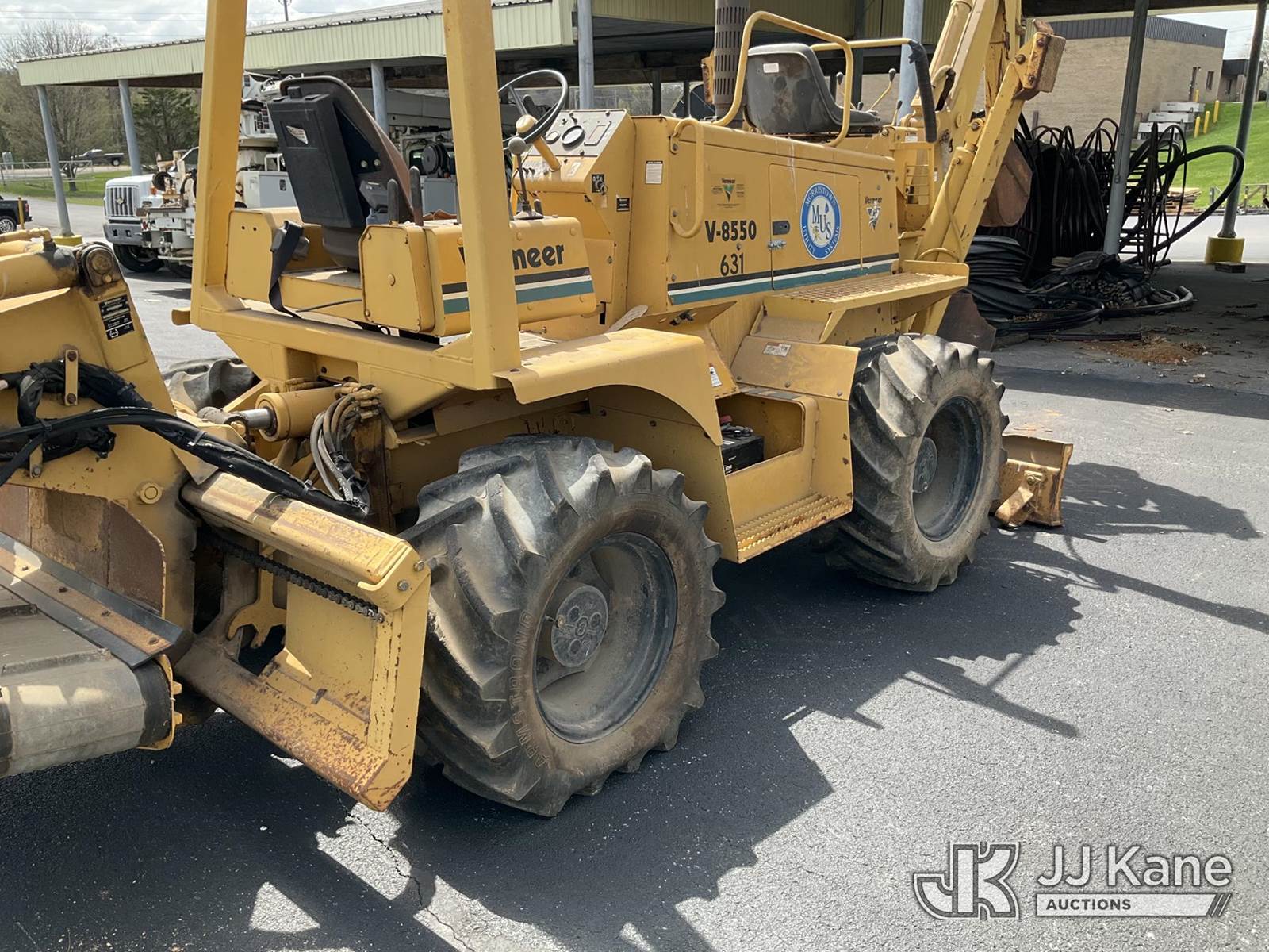 1995 Vermeer V8550 Rubber Tired Trencher, s/n 1VRG1009XR1000444, Cummins diesel, Hydrostatic, with trencher boom w/ carbide tipped chain, backhoe attachment, backfill blade & ROPS post, (Runs & Moves) (Reads 712 hours) NOTE: This unit is being sold AS IS/WHERE IS via Timed Auction and is located in Morristown, TN. For more information & removal arrangements please contact Brandon Erhard (828) 461-1128. (Buyer is responsible for removal. Assistance by consignor or JJ Kane Auctions is not assured.)