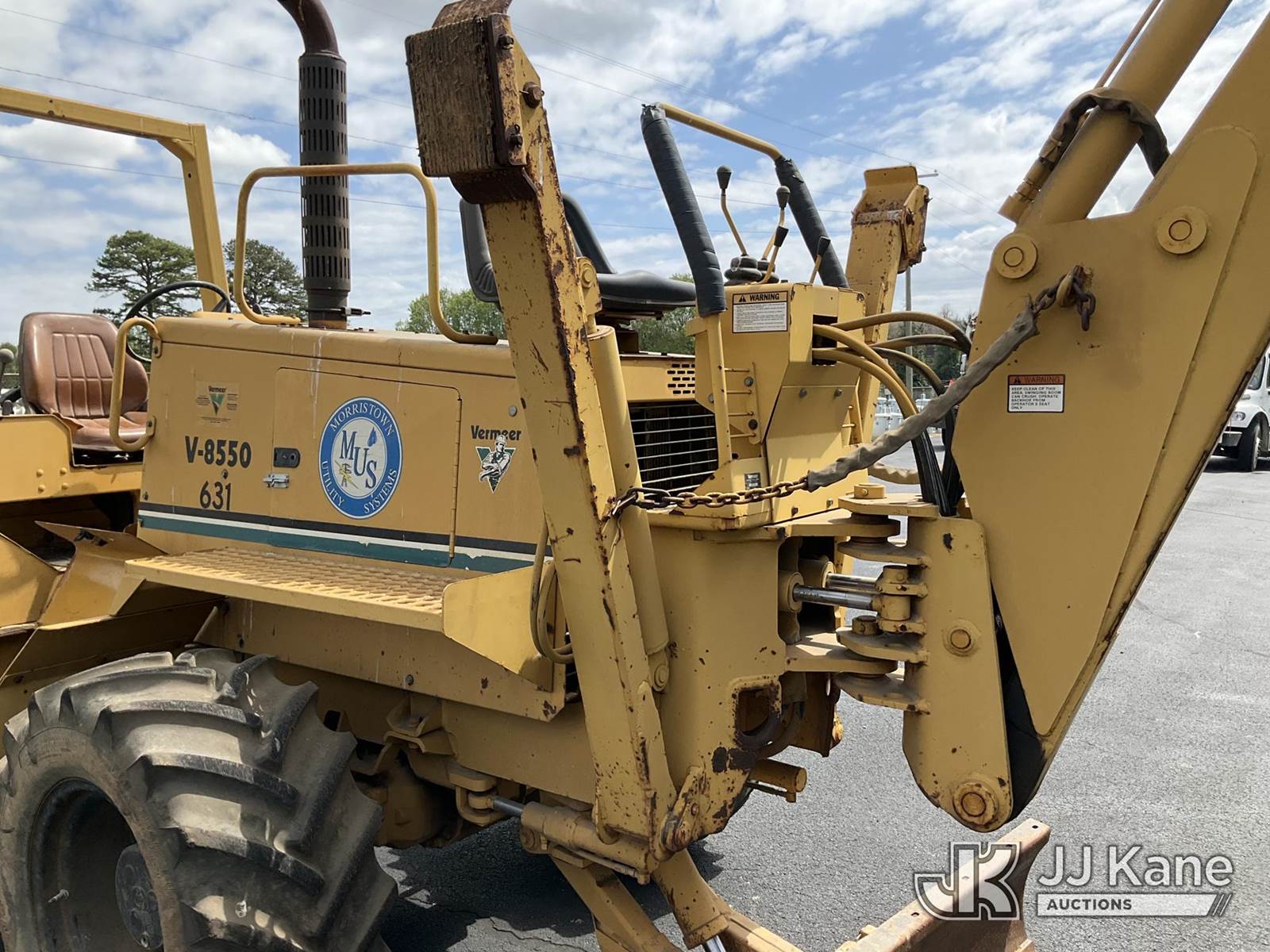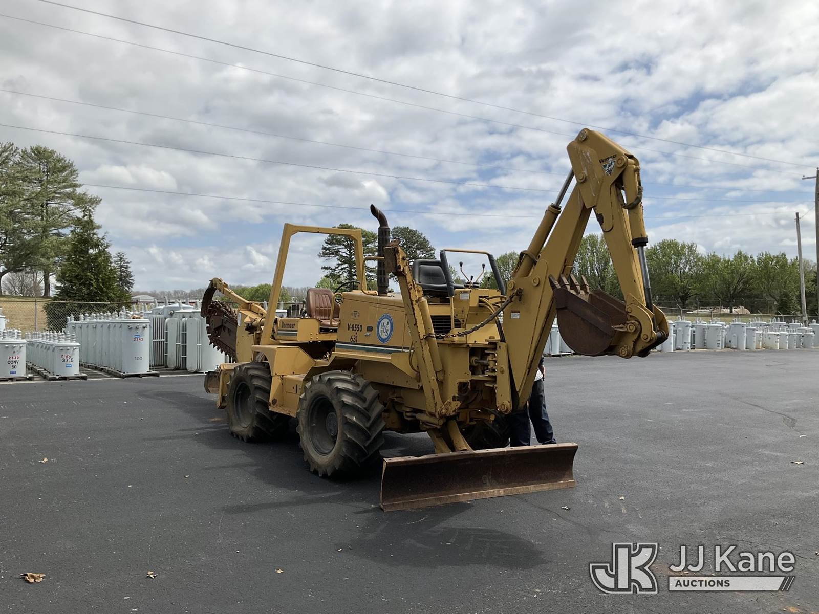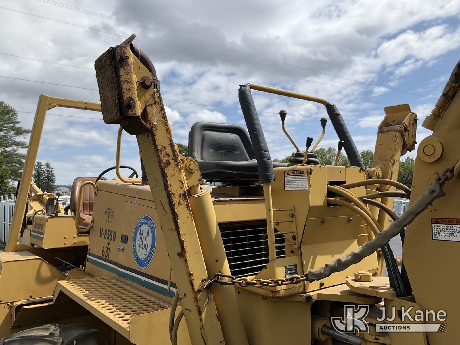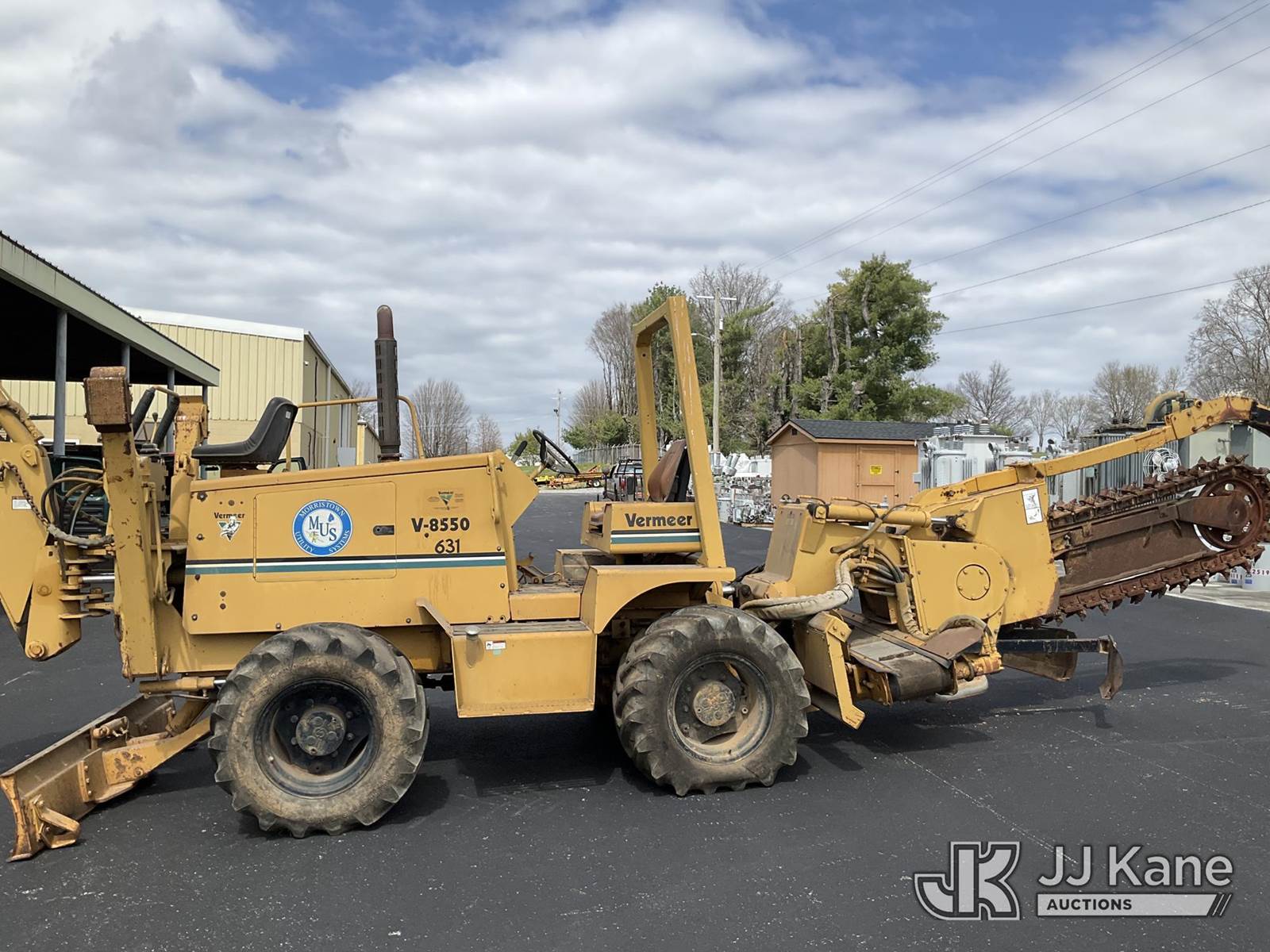 1995 Vermeer V8550 Rubber Tired Trencher, s/n 1VRG1009XR1000444, Cummins diesel, Hydrostatic, with trencher boom w/ carbide tipped chain, backhoe attachment, backfill blade & ROPS post, (Runs & Moves) (Reads 712 hours) NOTE: This unit is being sold AS IS/WHERE IS via Timed Auction and is located in Morristown, TN. For more information & removal arrangements please contact Brandon Erhard (828) 461-1128. (Buyer is responsible for removal. Assistance by consignor or JJ Kane Auctions is not assured.)