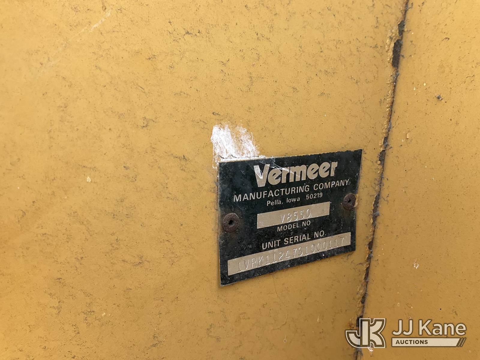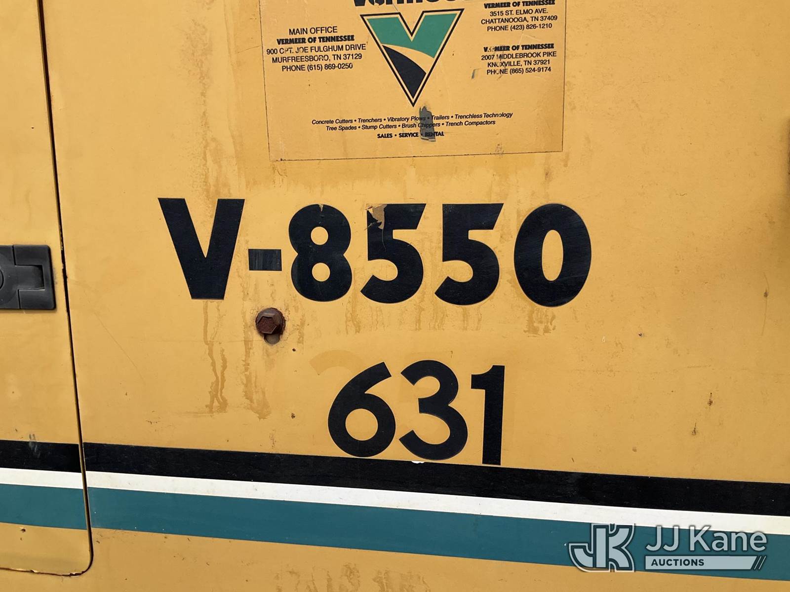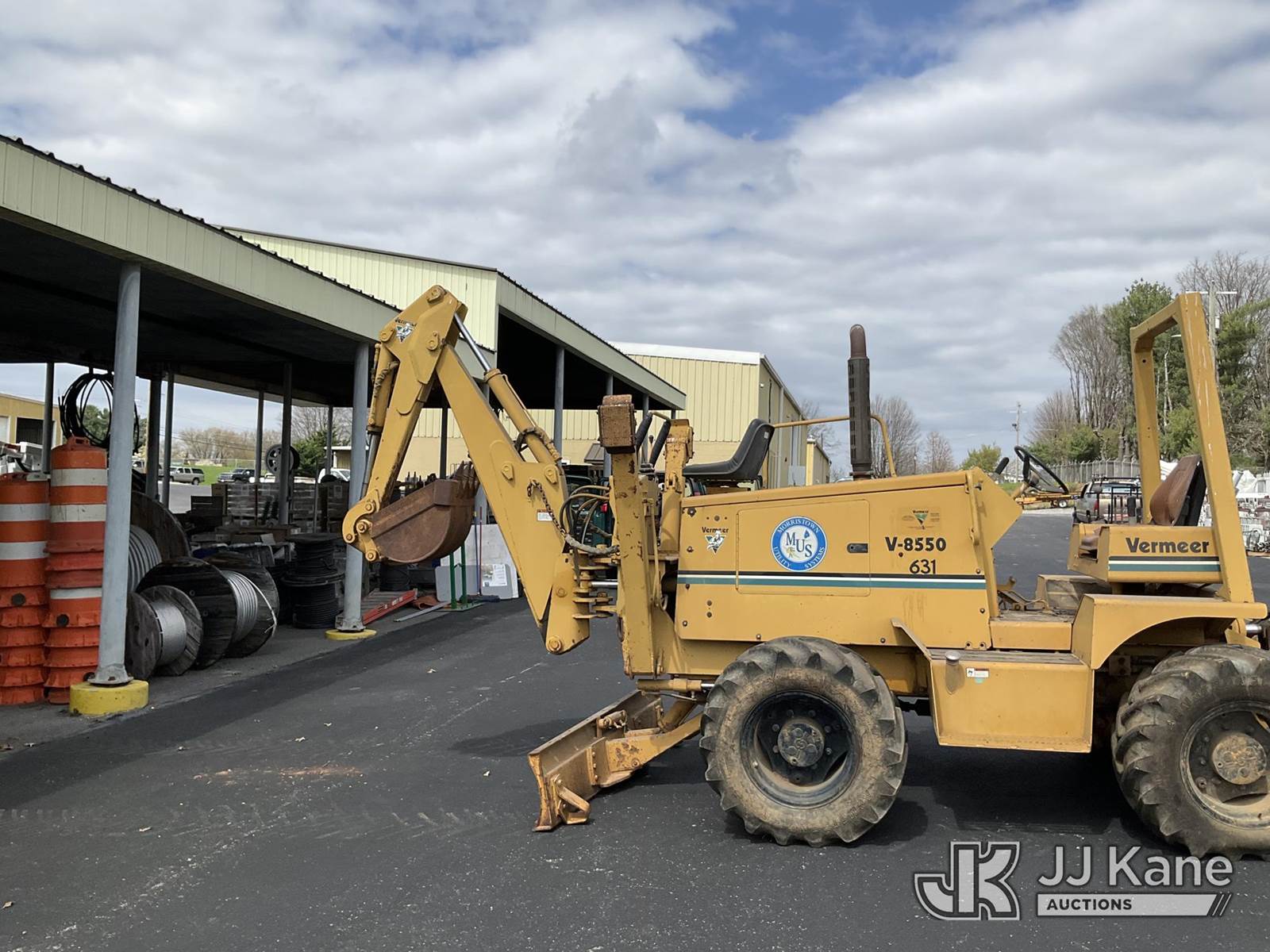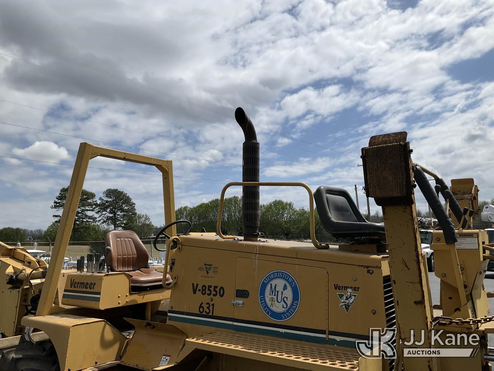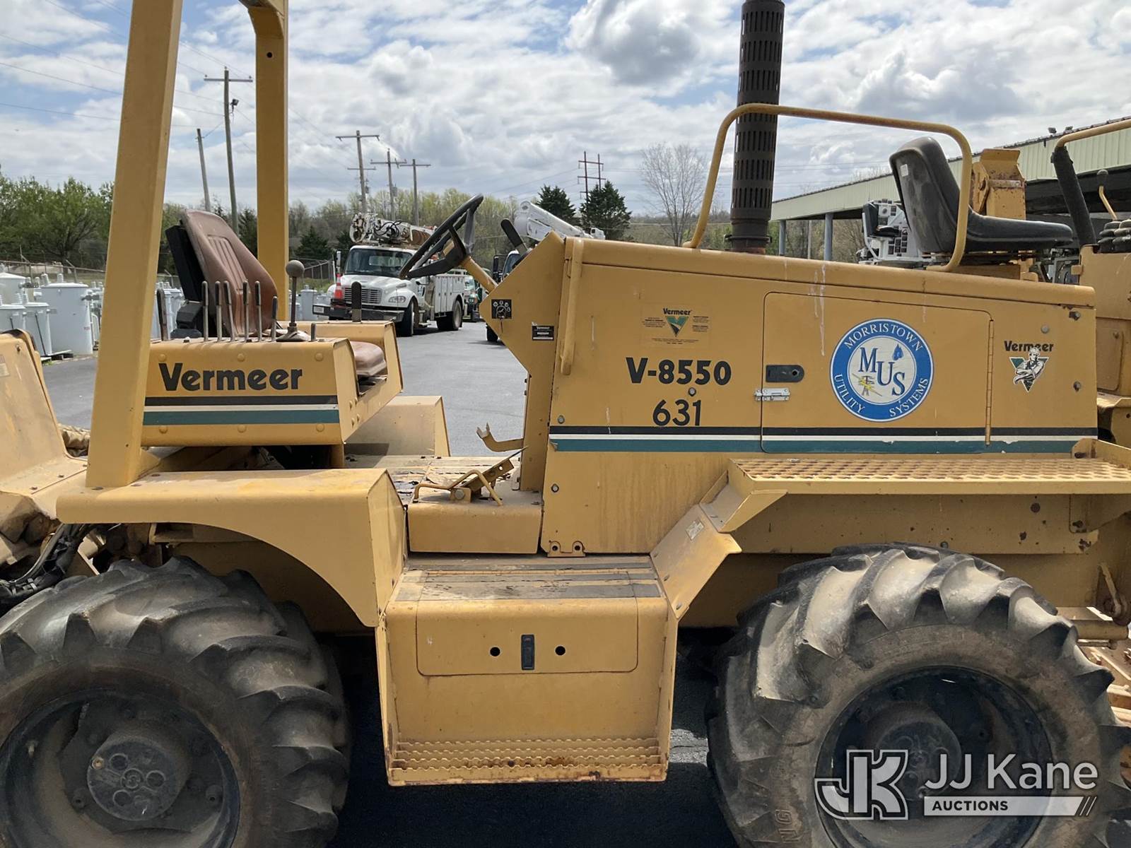1995 Vermeer V8550 Rubber Tired Trencher, s/n 1VRG1009XR1000444, Cummins diesel, Hydrostatic, with trencher boom w/ carbide tipped chain, backhoe attachment, backfill blade & ROPS post, (Runs & Moves) (Reads 712 hours) NOTE: This unit is being sold AS IS/WHERE IS via Timed Auction and is located in Morristown, TN. For more information & removal arrangements please contact Brandon Erhard (828) 461-1128. (Buyer is responsible for removal. Assistance by consignor or JJ Kane Auctions is not assured.)
