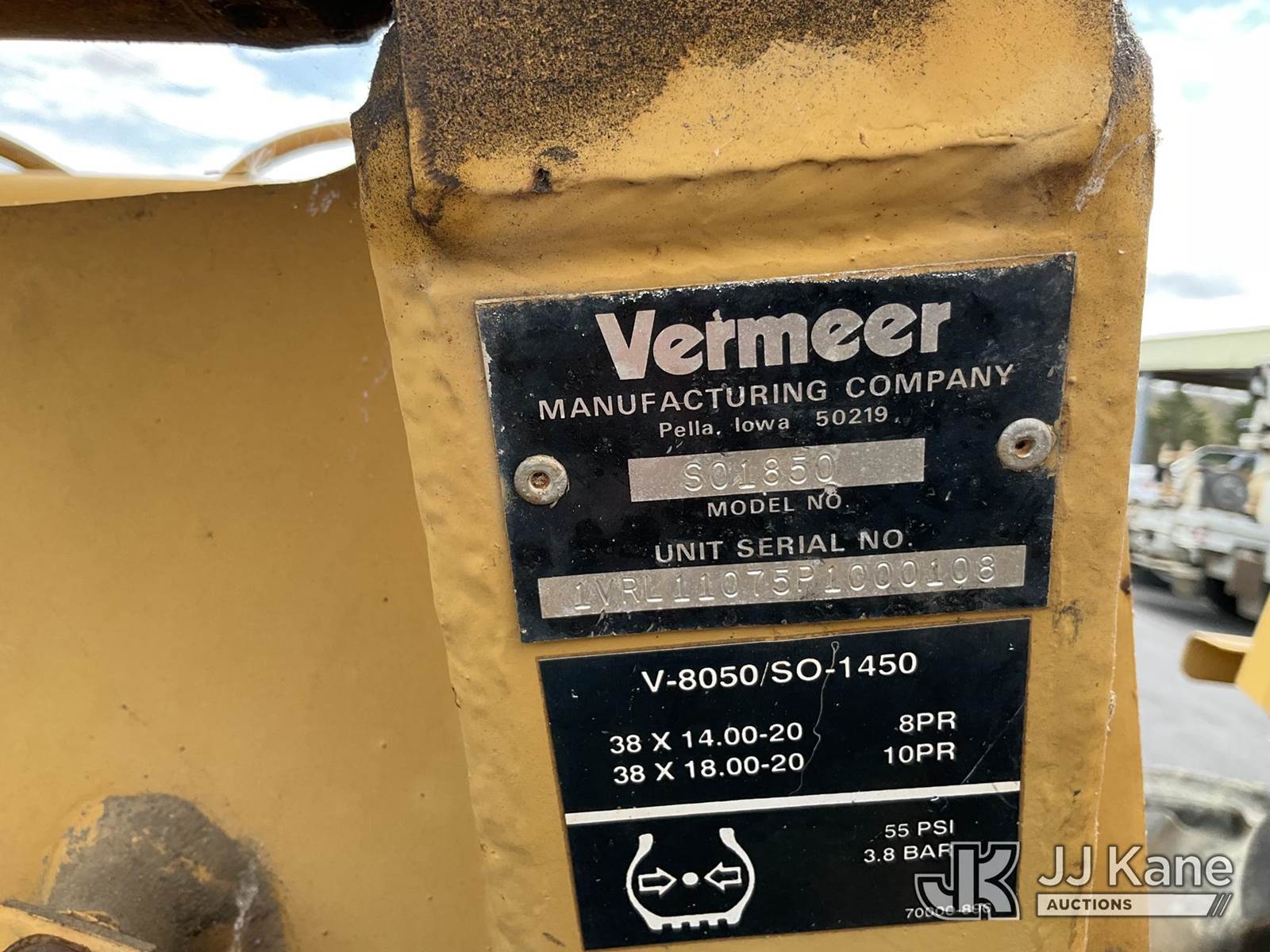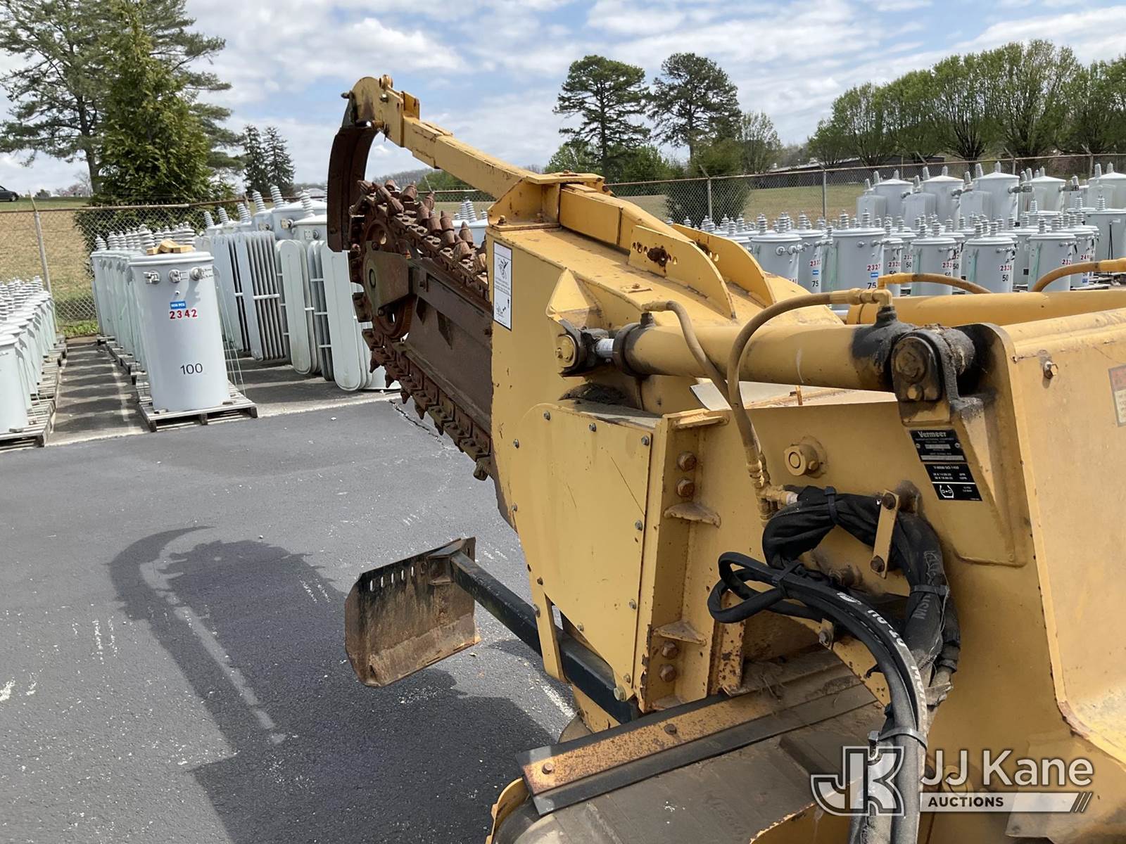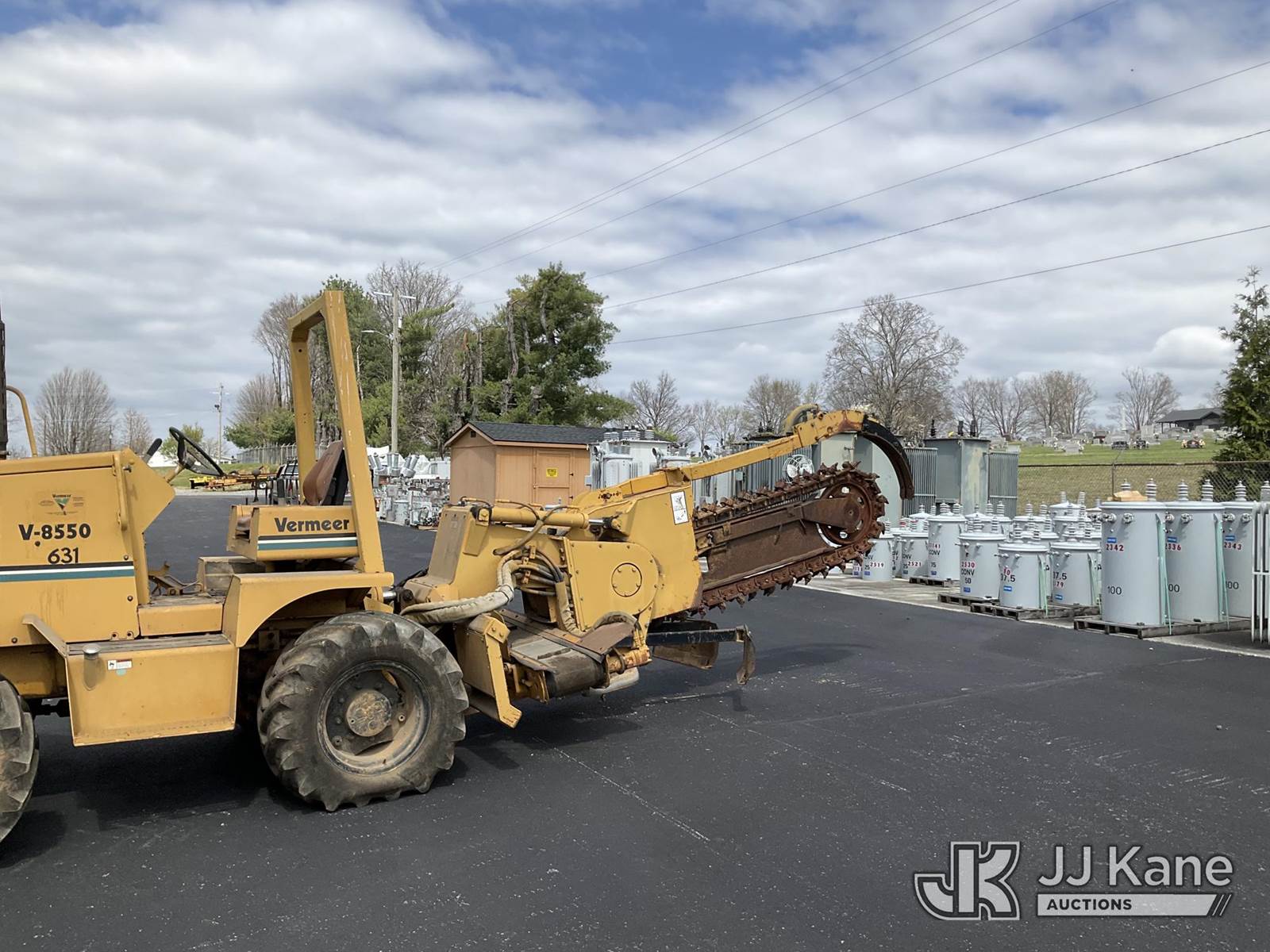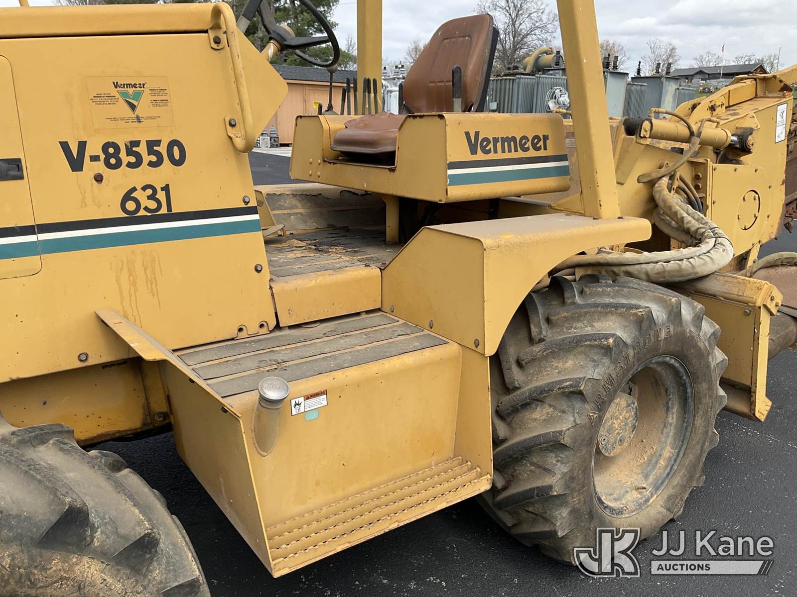 1995 Vermeer V8550 Rubber Tired Trencher, s/n 1VRG1009XR1000444, Cummins diesel, Hydrostatic, with trencher boom w/ carbide tipped chain, backhoe attachment, backfill blade & ROPS post, (Runs & Moves) (Reads 712 hours) NOTE: This unit is being sold AS IS/WHERE IS via Timed Auction and is located in Morristown, TN. For more information & removal arrangements please contact Brandon Erhard (828) 461-1128. (Buyer is responsible for removal. Assistance by consignor or JJ Kane Auctions is not assured.)