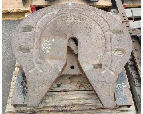 Simplex Stationary Fifth Wheel, 34" Frame Width, 36" Rail, 9" Deck Height, Passenger Side Release. Rail Has Torch Marks On Bolt Holes.