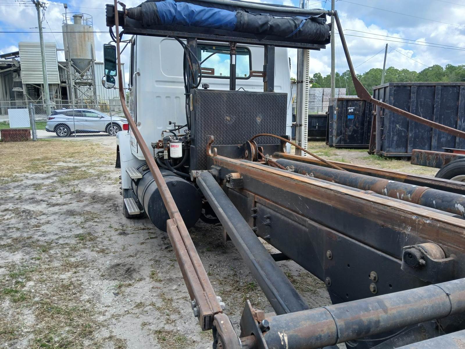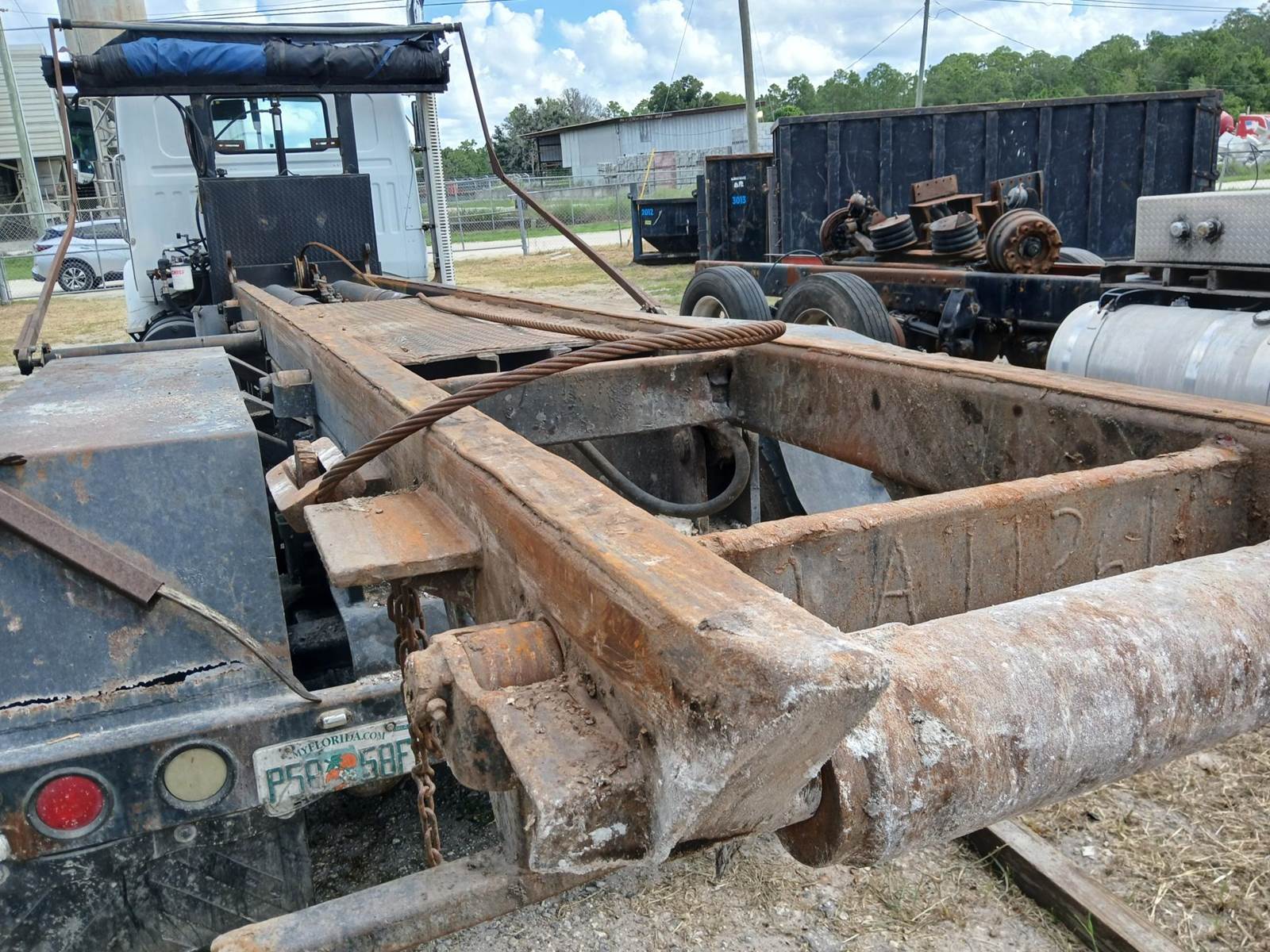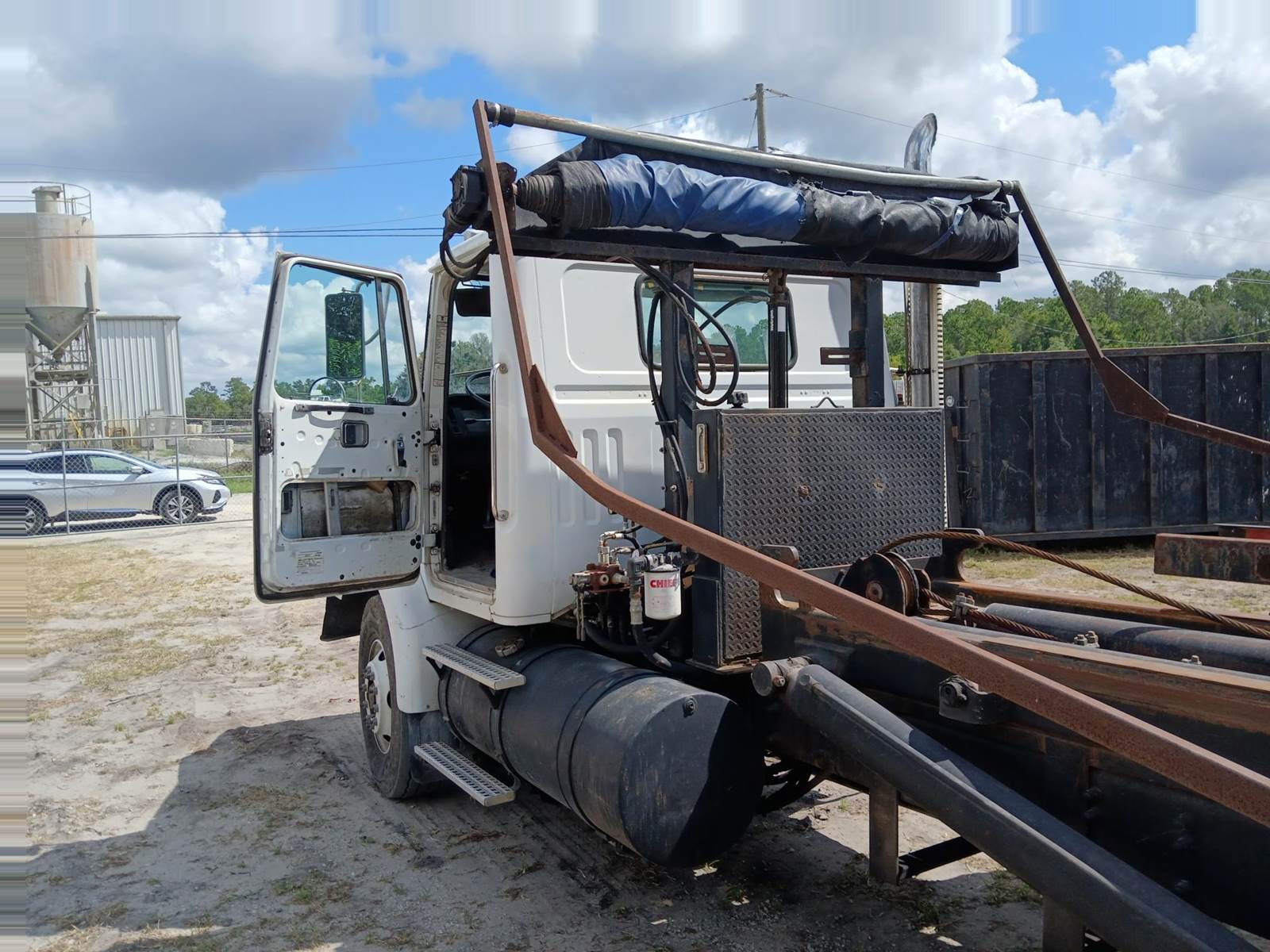 1995 white GMC tandem 24' ROLLOFF truck, with tarp. Cummins M11 diesel. 8LL Transmission. New injection pump. PTO. Good 11R/22.5 tires. 5812 hours. financing available