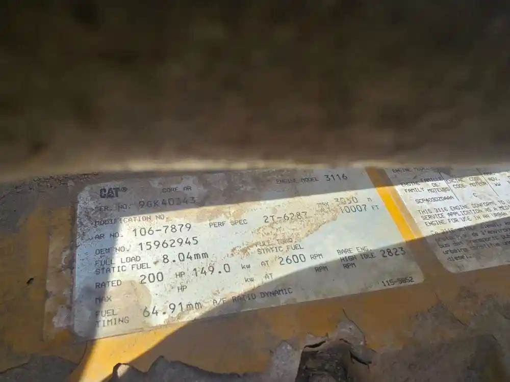 3116, 200 HP, S/N 9GK40343, AR# 106-7879, Engine is complete, possibly locked-up, needs further inspection