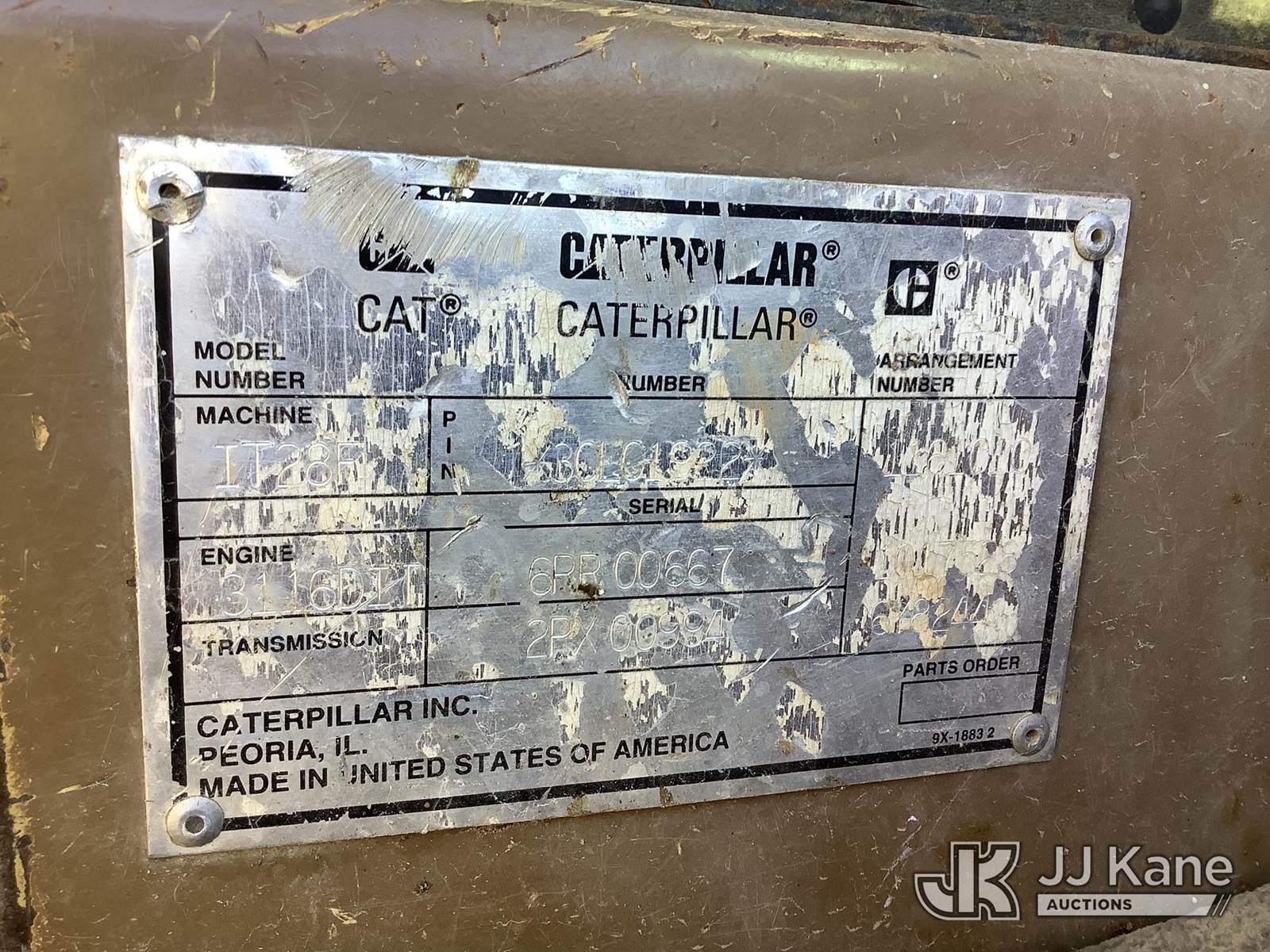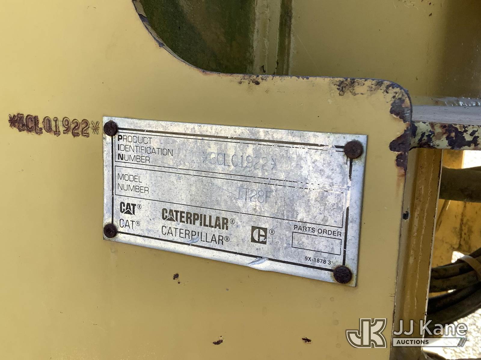 1996 Caterpillar IT28F Wheel Loader, s/n 3CL01922, Cat 3116 powershift, diesel, with GP loader bucket, EROPS, (Not Running, Condition Unknown, No Battery, Engine Compartments Will Not Open, Body/Rust Damage) (Seller States: Fuel System Issues) (Reads 8,698 hours) NOTE: This unit is being sold AS IS/WHERE IS via Timed Auction and is located in Graysville, AL. Inspection & preview days for this unit are by appointment only; please contact us at contact@jjkane.com or 84-Go-JJKane for more details. Alabama Auctioneer Michael Whitebread - License # 5592 (Buyer is responsible for removal. Assistance by consignor or JJ Kane Auctioneers is not assured.)