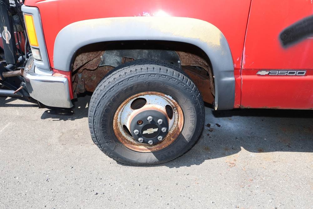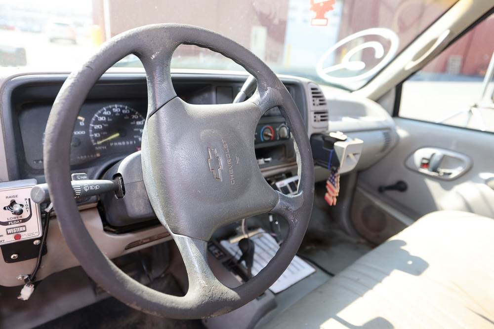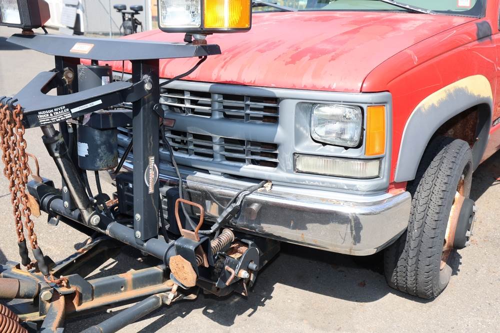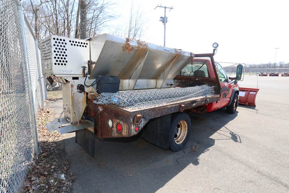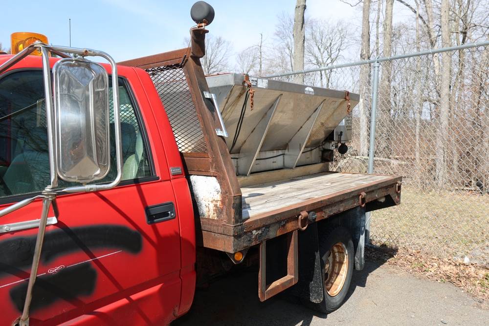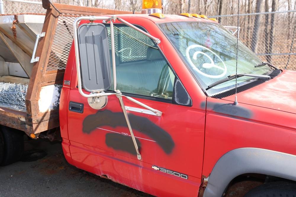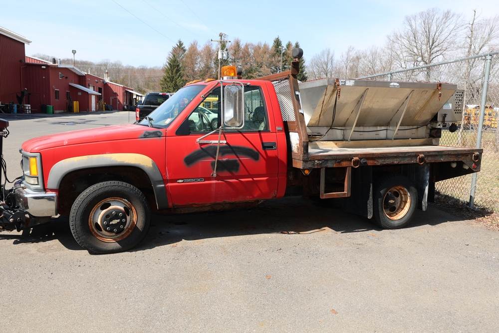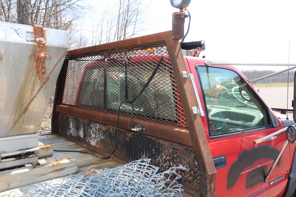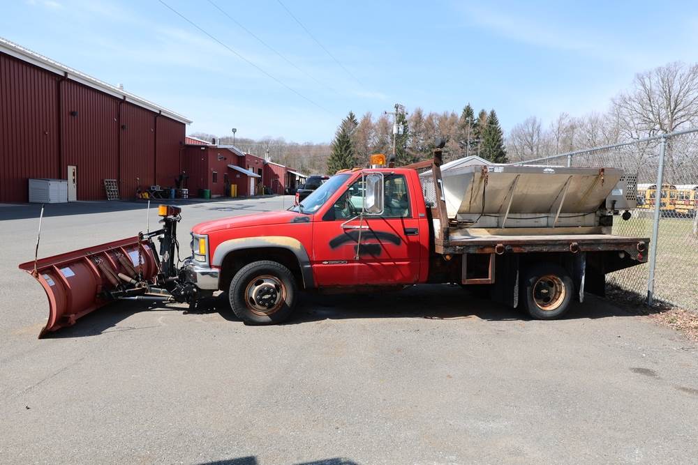 1996 Chevrolet C/K 3500 Flatbed. VIN: 1GBJK34R1TE185681. Body: Chassis 2D. Engine: 5.7L V8 FI Gasoline. Asset #: F208. Odometer reading: 68292. Seller reports: Ran when parked, must be towed, fencing not included. Salt spreader, front plow. Title & key available.