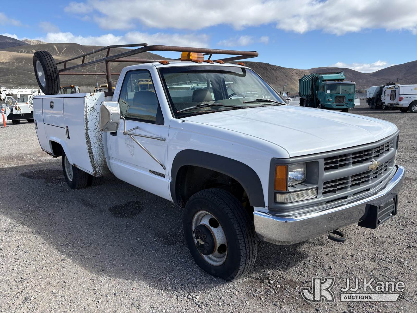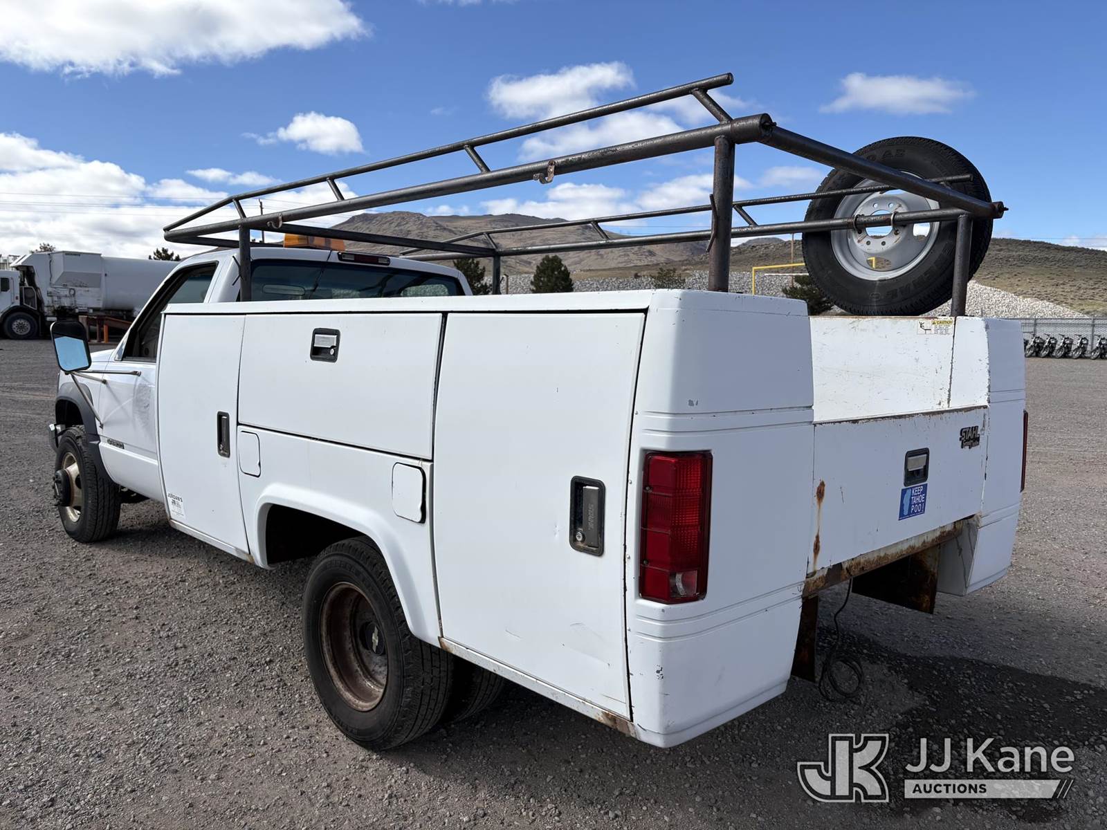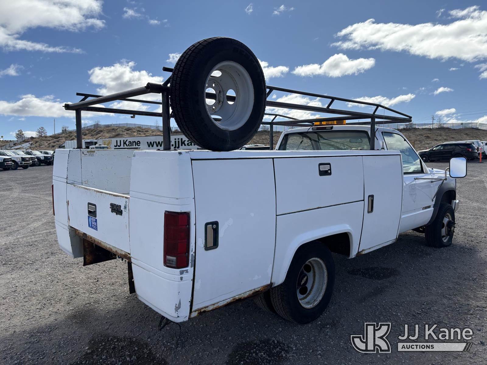 1996 Chevrolet K3500 Service Truck, 8-cyl gas, 4wd, Auto, A/C, (Exempt from Odometer Disclosure - Reads 65,610 miles) (Starts With Jump, Weak Batteries, Runs, Moves) (Bad Tires Not Road Worthy, Paint Damage, Rust Damage) This is a Titled Item NOTE: This unit is being sold AS IS/WHERE IS via Timed Auction and is located in Sparks, NV. Inspection & preview days for this unit are the 2 business days prior to the first day of items closing for this auction, item is located at 601 Britain Dr Sparks, NV 89437 and hours of operations are 8a-4p. Titles executed exactly as bidder registered. Ensure your name and/or business name and address in JJ Kane and/or ProxiBid is correct before bidding. For pre-sale questions, please contact Office Staff @ (801) 519-0123 and provide sale date and lot number. Sparks Dealer License Number DLR000052908 / OHV000052909. (Buyer is responsible for removal. Assistance by consignor or JJ Kane Auctions is not assured.)