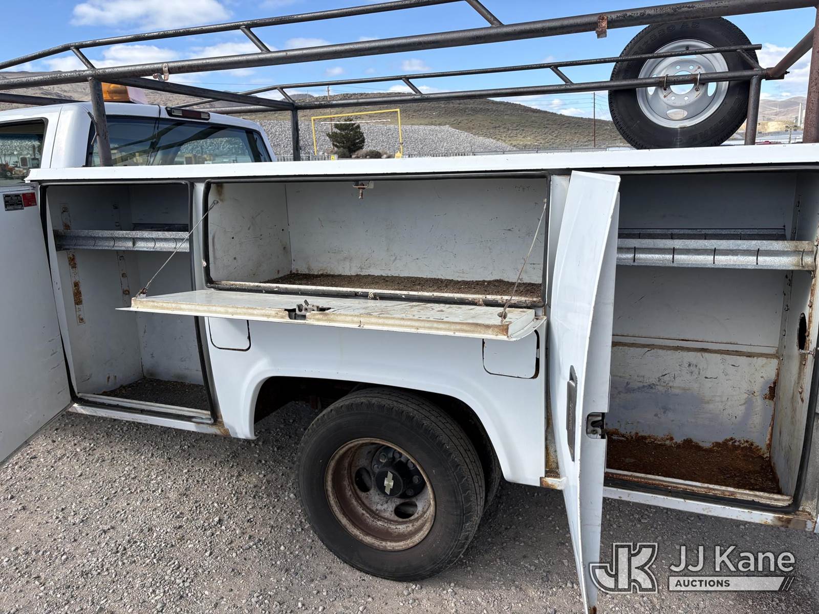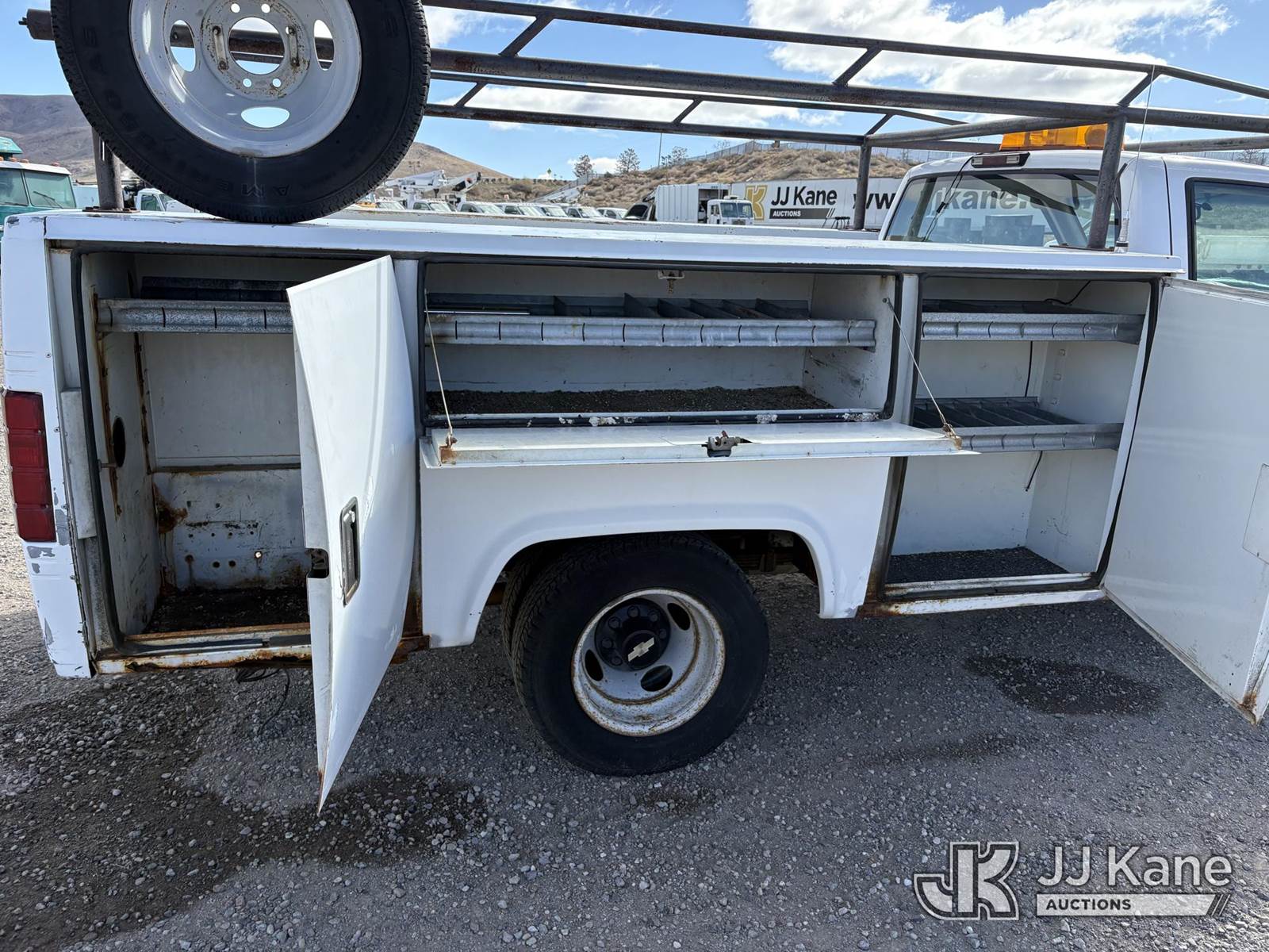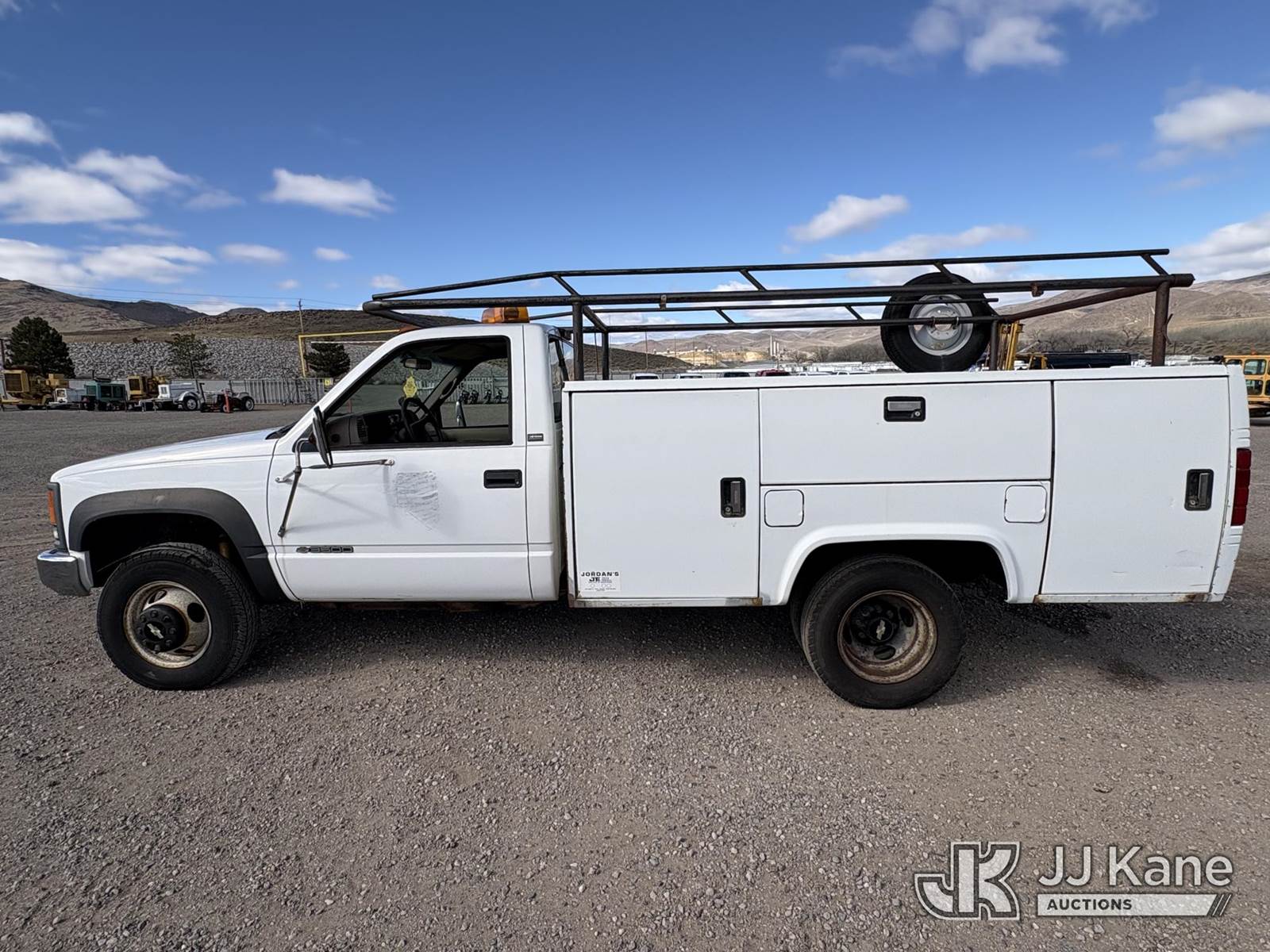 1996 Chevrolet K3500 Service Truck, 8-cyl gas, 4wd, Auto, A/C, (Exempt from Odometer Disclosure - Reads 65,610 miles) (Starts With Jump, Weak Batteries, Runs, Moves) (Bad Tires Not Road Worthy, Paint Damage, Rust Damage) This is a Titled Item NOTE: This unit is being sold AS IS/WHERE IS via Timed Auction and is located in Sparks, NV. Inspection & preview days for this unit are the 2 business days prior to the first day of items closing for this auction, item is located at 601 Britain Dr Sparks, NV 89437 and hours of operations are 8a-4p. Titles executed exactly as bidder registered. Ensure your name and/or business name and address in JJ Kane and/or ProxiBid is correct before bidding. For pre-sale questions, please contact Office Staff @ (801) 519-0123 and provide sale date and lot number. Sparks Dealer License Number DLR000052908 / OHV000052909. (Buyer is responsible for removal. Assistance by consignor or JJ Kane Auctions is not assured.)