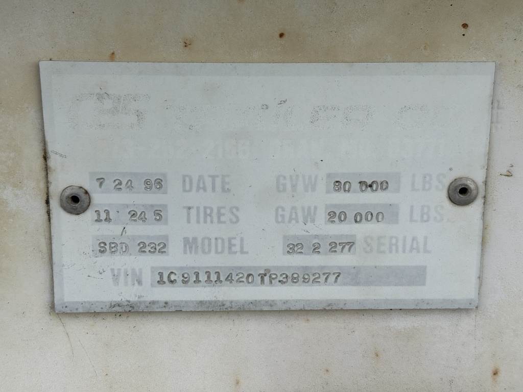 Location Arbuckle CA ***End-User Consignment*** VIN: 1C9111420TP389277 king pin, air brakes, rear pintle hitch, 80,000lb GVWR, spring suspension, 11R24.5 tires.*This item is located in Arbuckle, California and can be viewed by appointment only. To schedule a preview or to ask questions about this item call 888-230-8840 *