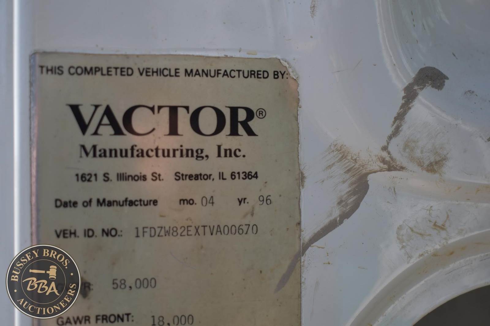 1996 Ford LNT 8000 Vac Truck-255,233 miles, 1,865 hrs, truck is equipped with Vactor 2100 vac system, front reel, front control, VIN#1FDZW82EXTVA00670