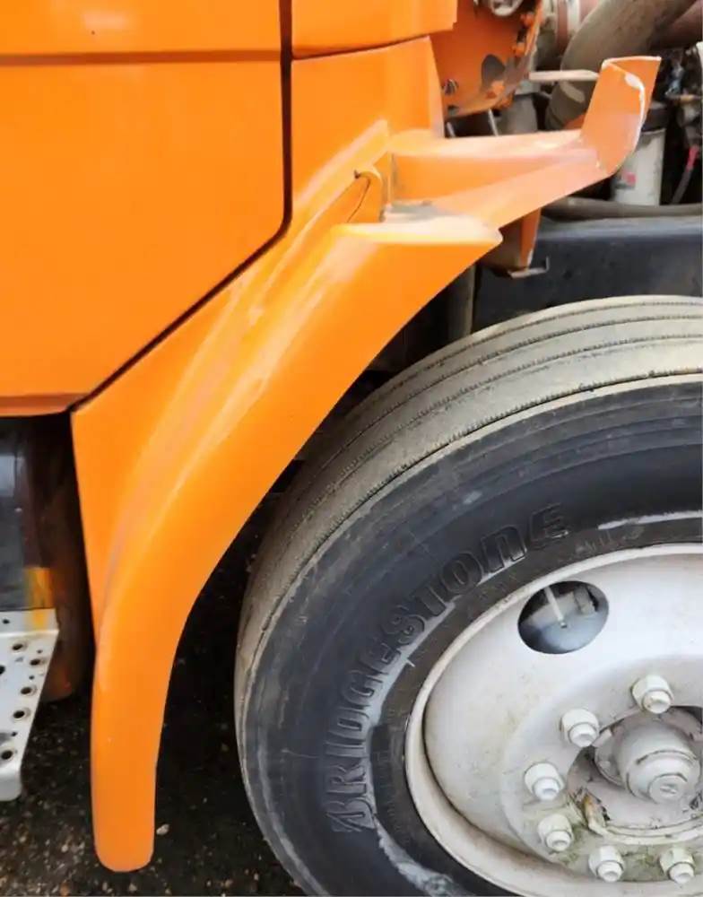 (Used) 1996 Freightliner FL70, FENDER EXTENSION- Side: Passenger Right Side, Color: Orange, Material: Fiberglass, Damage Reference images for condition, For more information about this item, give us a call. We ship Worldwide! (CRG HEAVY TRUCK PARTS) 929 W PULASKI HWY ELKTON, MD 21921