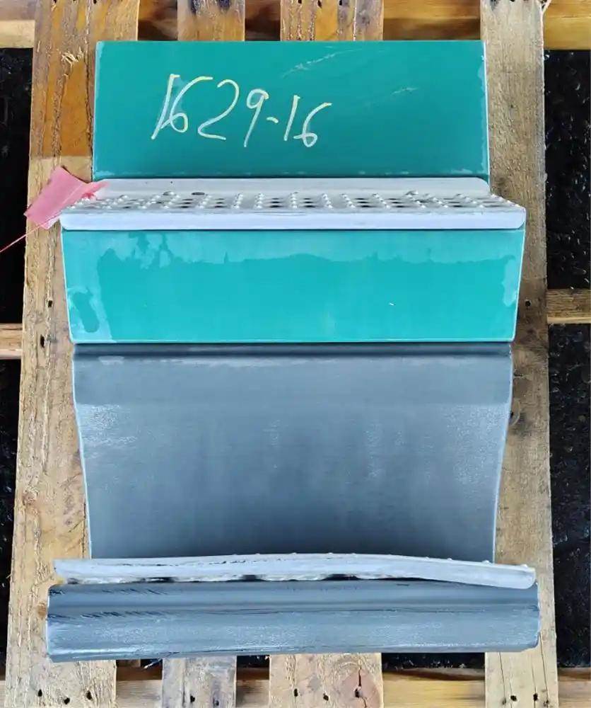 1996 Freightliner FLD120 Passenger Side RH Intermediate Tank Fairing, 19.5"L. P/N 22-40042-001, 22-39449-001. Small Areas Of Exposed Fiberglass, Scrapes On Bottom Section, Bent Lower Step