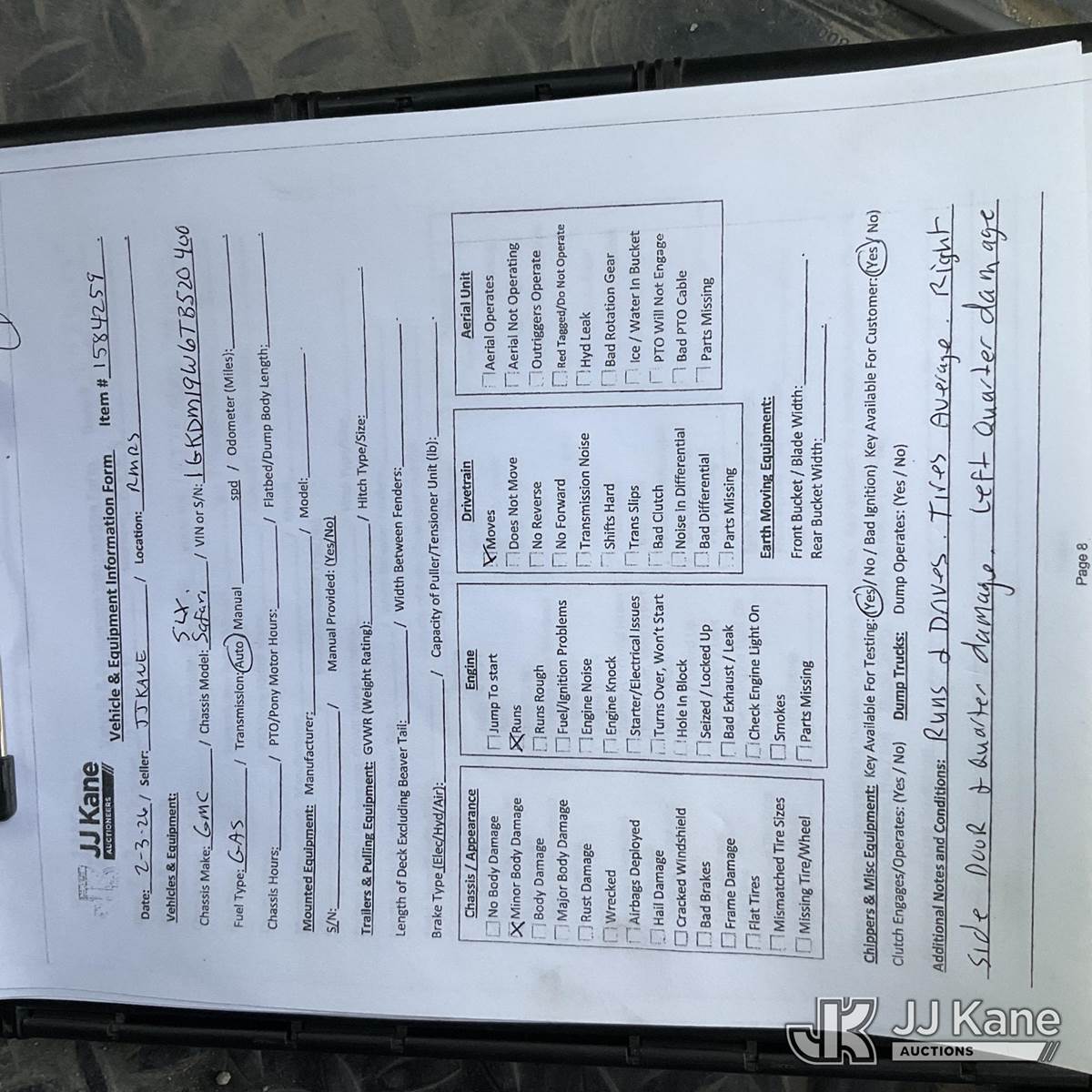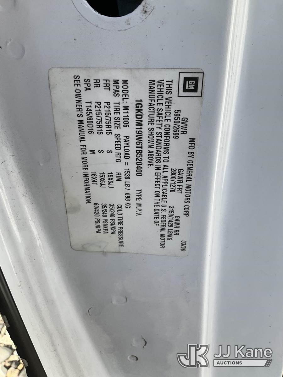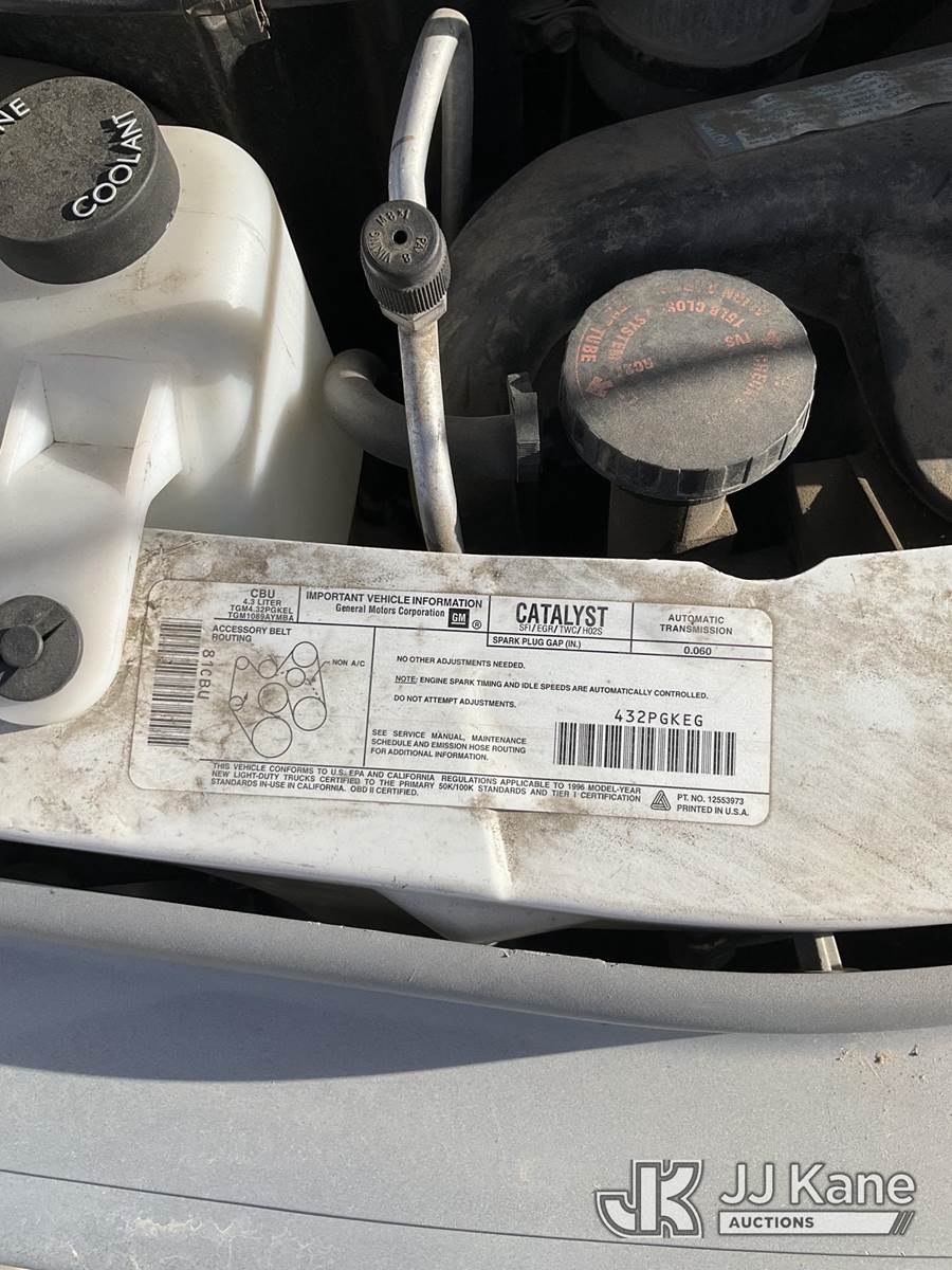 1996 GMC Safari Passenger Van, 4.3L V6 OHV 12V gas, RWD, 4-Speed Automatic, A/C, (Exempt from Odometer Disclosure - Reads 66,236 miles) (Runs & Moves) (Body Damage) This is a Titled Item NOTE: This unit is being sold AS IS/WHERE IS via Timed Auction and is located in Grand Junction, CO. For more information & removal arrangements please contact John Larkin @ John.larkin@jjkane.com (Buyer is responsible for removal. Assistance by consignor or JJ Kane Auctions is not assured.)