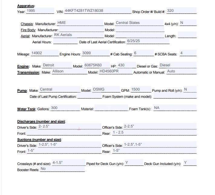 1996 HME Inc. ladder truck
