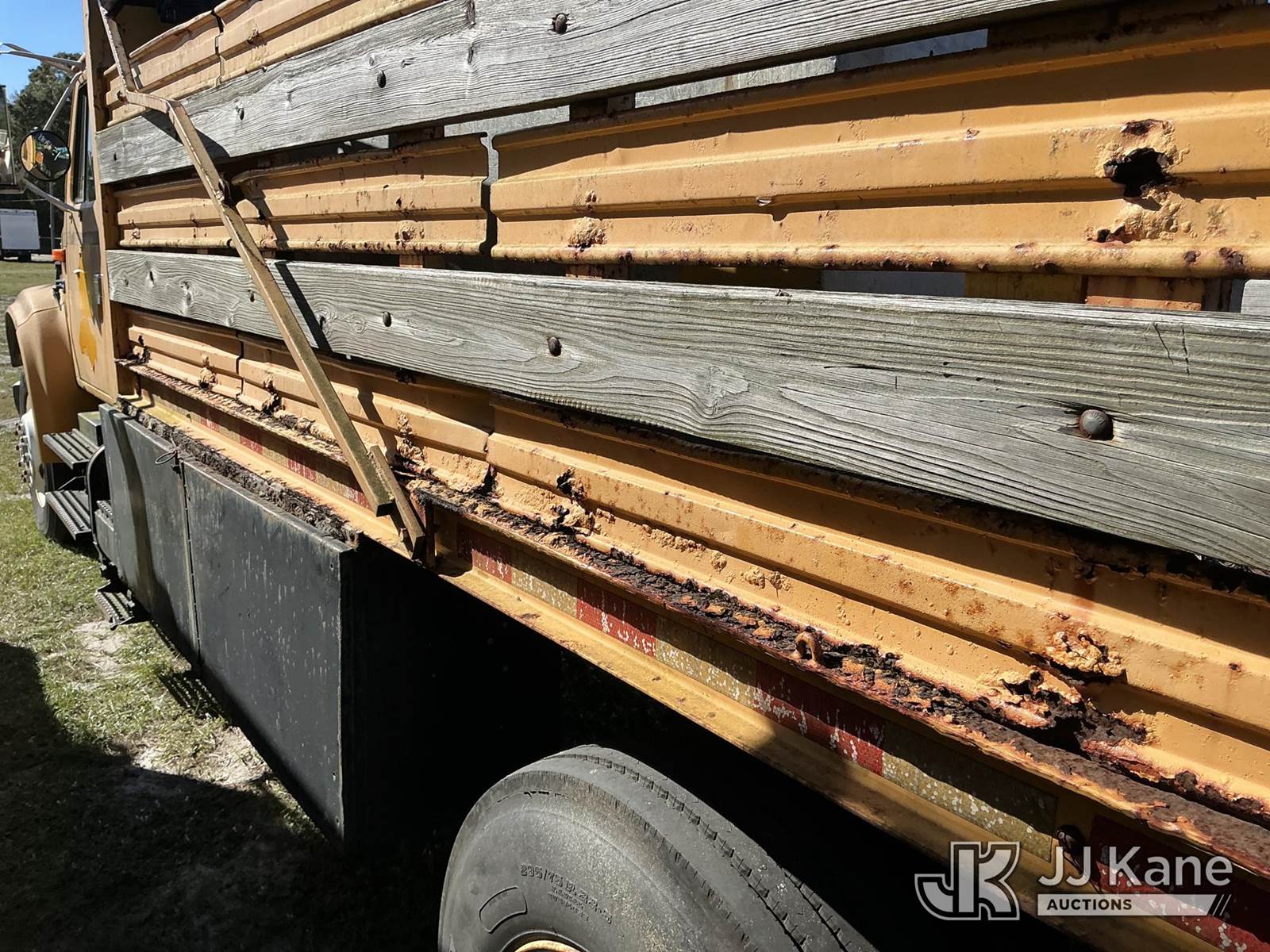 1996 International 4700 Flatbed Truck, 7.3L V8 OHV 16V Auto, 4X2, Dual Fuel (CNG & Diesel), A/C, with stake sides, (Exempt from Odometer Disclosure - Reads 91,812 miles) State of FL Unit (Not Running, Condition Unknown)(Paint Damage, Rust)(FL Residents Purchasing Titled Items - tax, title & registration fees will be collected at the maximum rate of $400.00 under 25,999 and $800.00 for Over 26,000 and $250.00 trailers - Proof of insurance is mandatory; Out of State Residents Purchasing Title Items - tax will be collected based upon your state rate.) (Reads 11,207 hours) This is a Titled Item NOTE: This unit is being sold AS IS/WHERE IS via Timed Auction and is located in Thonotosassa, FL. Inspection & preview days for this unit are the 2 business days prior to the first day of items closing for this auction, item is located at 11720 N US 301 Thonotosassa, Fl 33592 and hours of operations are 8a-4p. For pre-sale questions, please contact Office Staff @ (813) 986-2485. (Buyer is responsible for removal. Assistance by consignor or JJ Kane Auctions is not assured.)