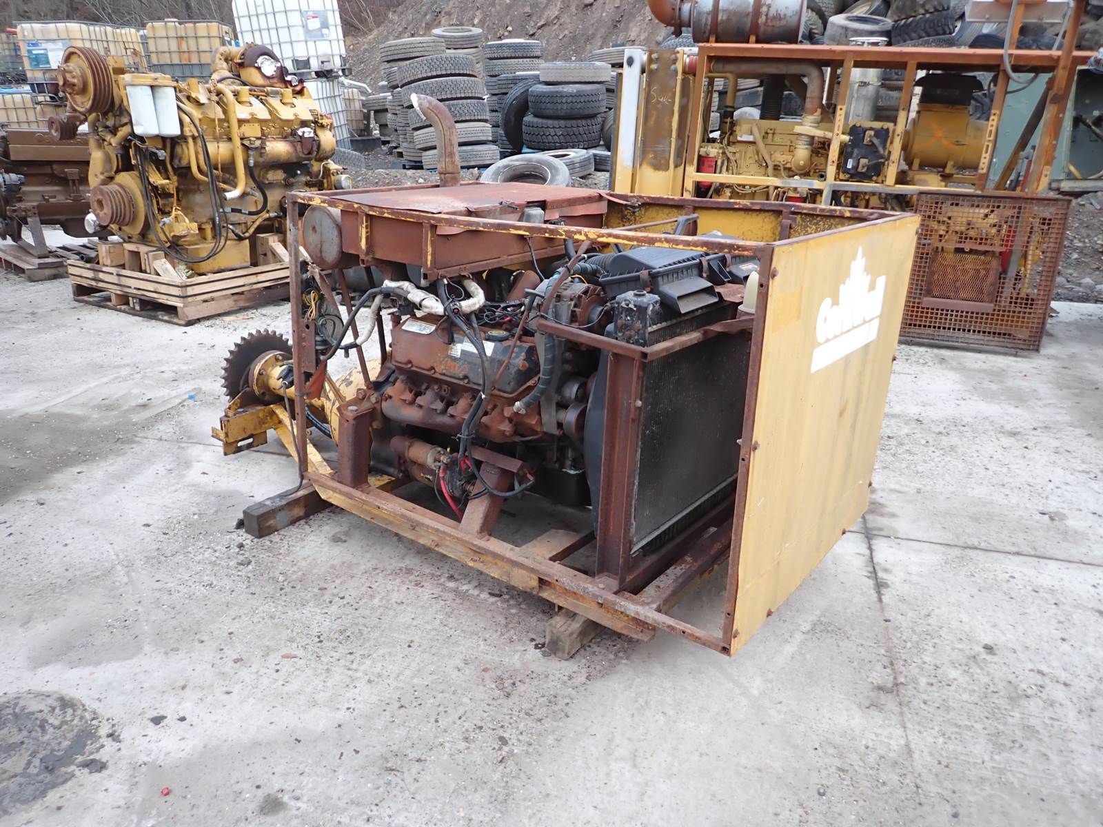 1996 International Navistar 7.3 liter diesel engine, turbocharged, 215 HP at 3000 RPM rating, A215 series, family # TNV7.3C8DAAA, built into a power unit configuration w/ twin disc PTO clutch & long reduction drive, as pictured. RUNS EXCELLENT, SHOWING 99.9 HOURS ON METER, UNKNOWN IF ORIGINAL. SEE VIDEO, NO SMOKE OR BLOWBY OBSERVED, GOOD OIL PRESSURE DURING COLD TEST RUN. REMOVED FROM A GOV'T OWNED SNOWBLOWER UNIT IN STRONG RUNNING CONDITION -- VERY NICE UNIT HERE. PRICE IS FOR EVERYTHING YOU SEE, HOWEVER WE CAN REMOVE ENGINE FROM FRAME AND SHIP LTL IF NEEDED -- YOUR CHOICE !!