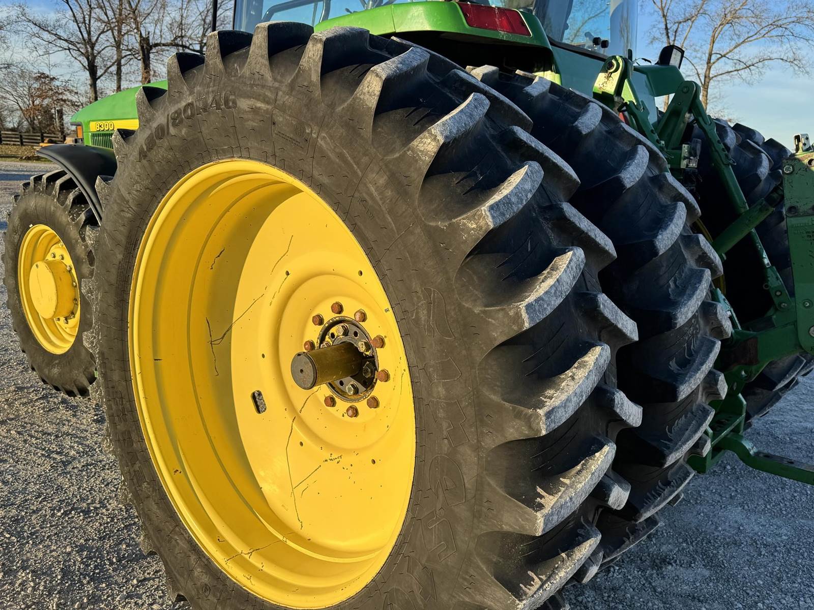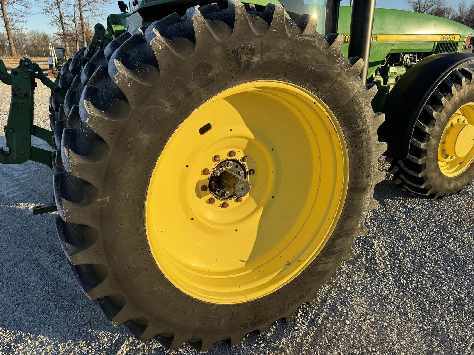 1997 John Deere 8300 MFWD, 5 remotes, 1000 pto, Front weights, 420/90R30 front and LIKE NEW Firestones 480/80R46 duals, RW8300P011501, 9,455 hrs.