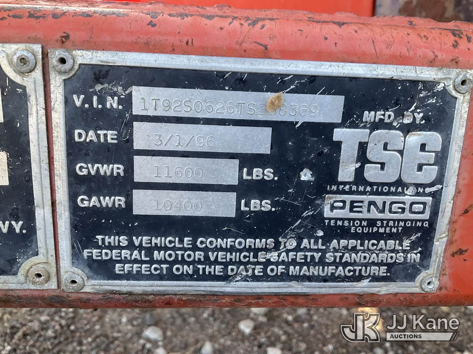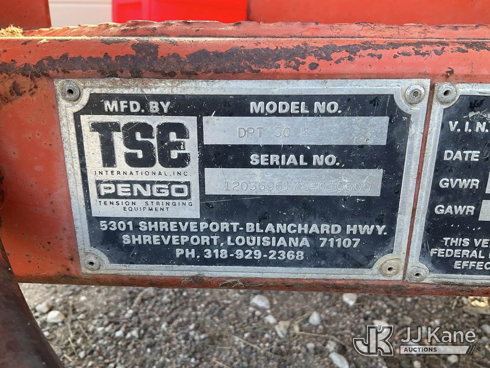 1996 TSE DPT30B Tensioner Trailer, s/n 1T92S0626TS268369, (No Title, Not Running) (Cranks Over W/ Jump) NOTE: This unit is being sold AS IS/WHERE IS via Timed Auction and is located in Papillion, NE. For more information & removal arrangements please contact Charlie de Kanter @ (281) 910-7147. Load out by appointment only, Buyer/Hauler must present copy of paid invoice upon arrival. Purchaser acknowledges ALL lots must be removed within 5 business days of Auction, or a storage fee may be incurred. For load out and pick up information, please reference the release form sent out after purchase. (Buyer is responsible for removal. Assistance by consignor or JJ Kane Auctioneers is not assured.)