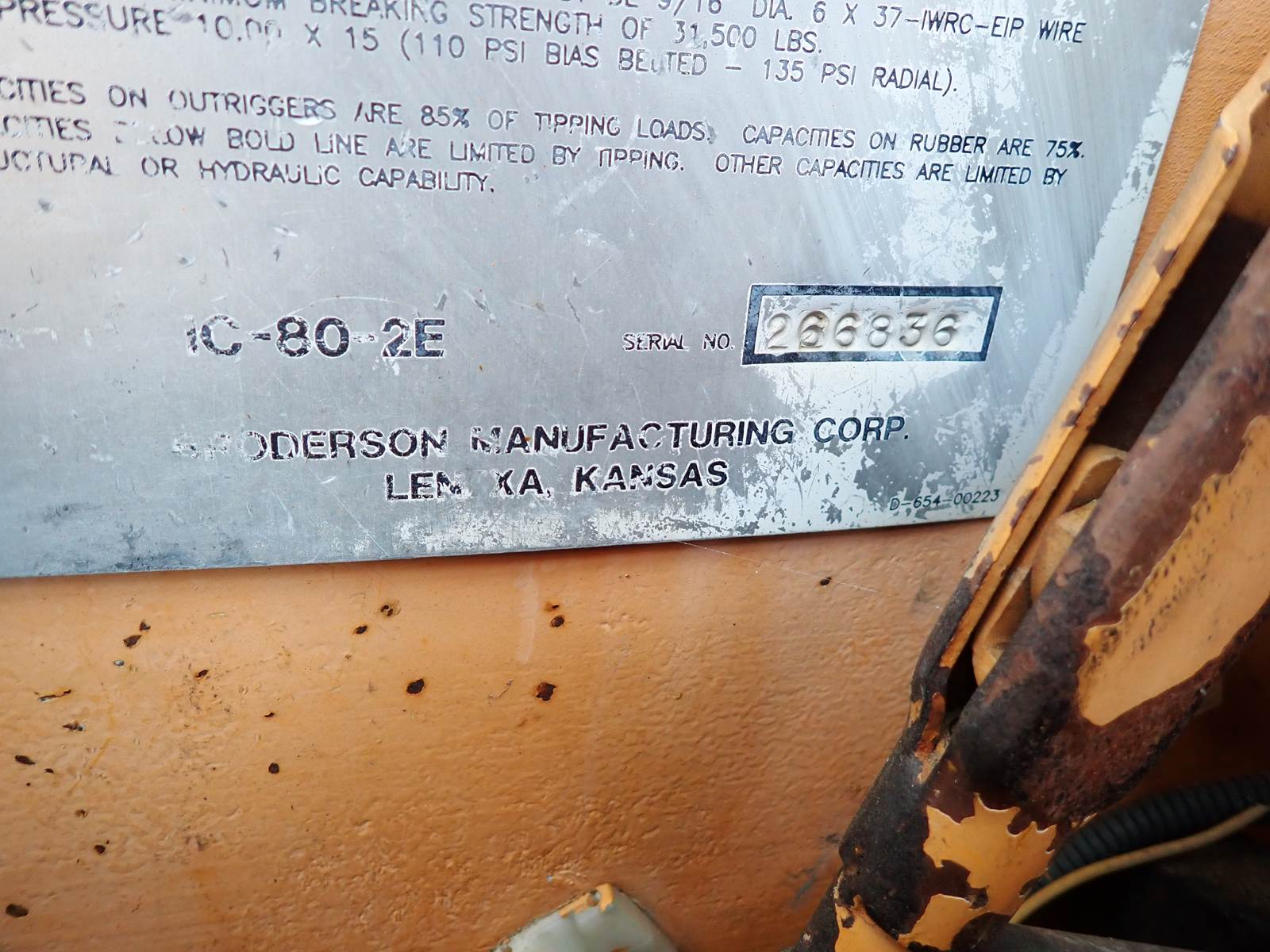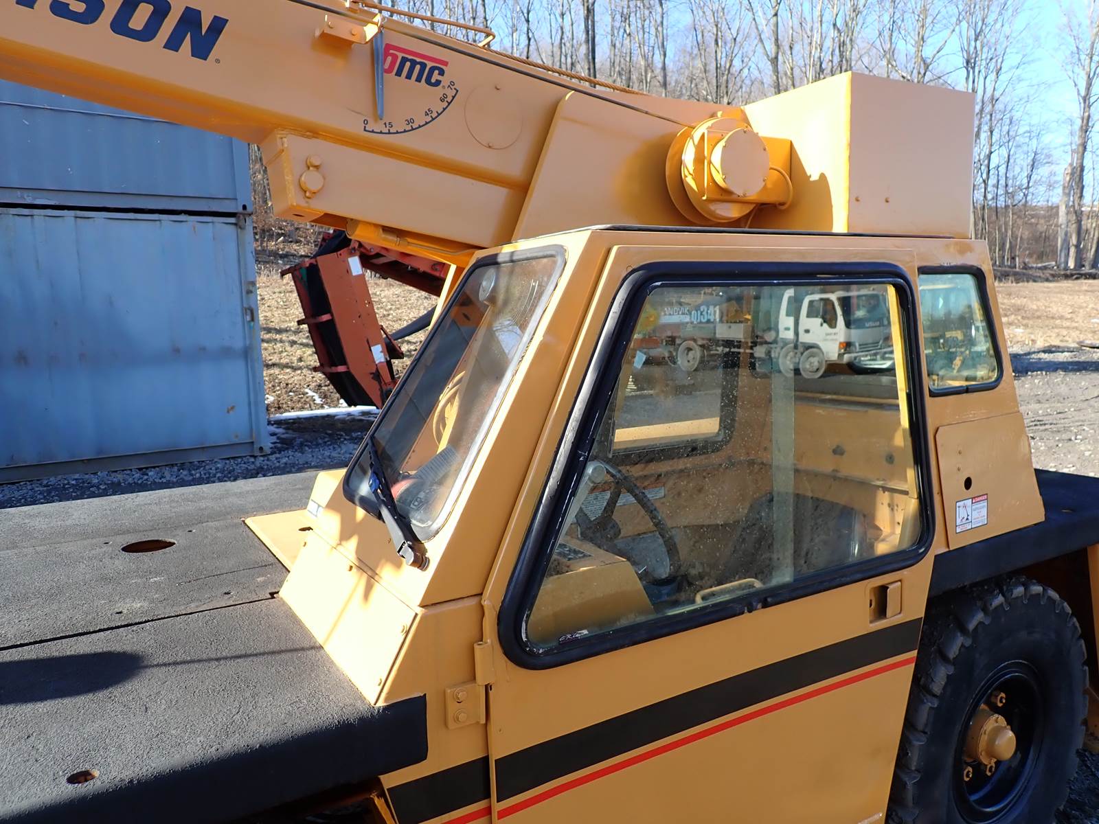 1997 Broderson IC80-2E carry deck crane, John Deere diesel engine, 4813 hours, 24' maximum boom length plus 10' swingaway jib, 5 ton capacity block, 17k lbs max lift capacity, 4 way steering, enclosed cab. NICE RUNNING CRANE -- RUNS AND OPERATES LIKE IT SHOULD -- RELIABLE JOHN DEERE DIESEL ENGINE, NICE RUBBER, HANDY LITTLE CRANE FOR A GREAT PRICE !!