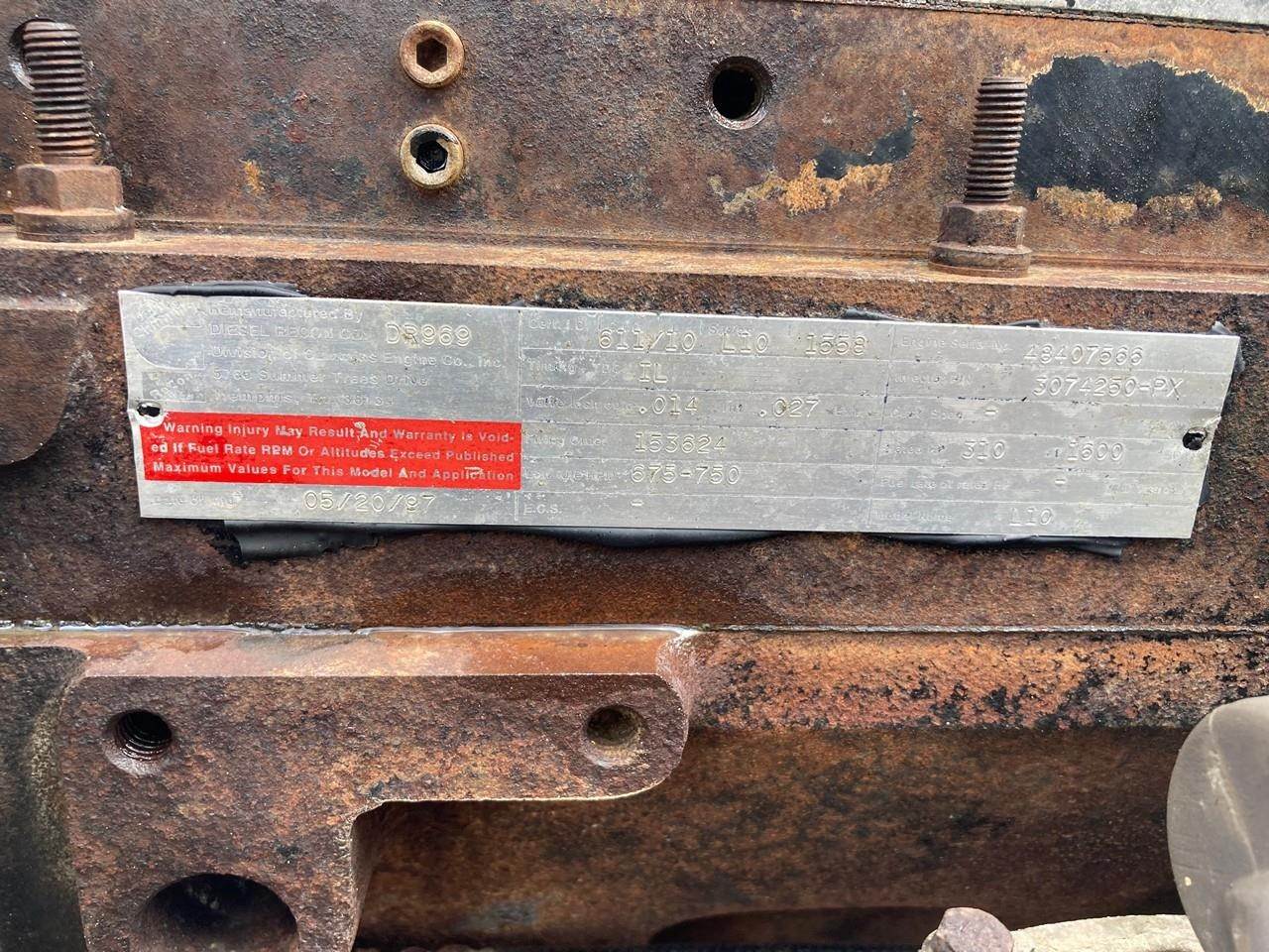 GOOD USED 1997 CUMMINS L10 310HP DIESEL TAKEOUT ENGINE FOR SALE at ADELMAN’S TRUCK PARTS in CANTON, OHIO. ALL COMPLETE and RUN TESTED, TURBOCHARGED and AIR TO AIR INTERCOOLED, HIGH FLOW COOLING and EXTERNALLY BALANCED, 310 HP @ 1600 RPM, CPL # 1558, with 70+ LBS OIL PRESSURE.