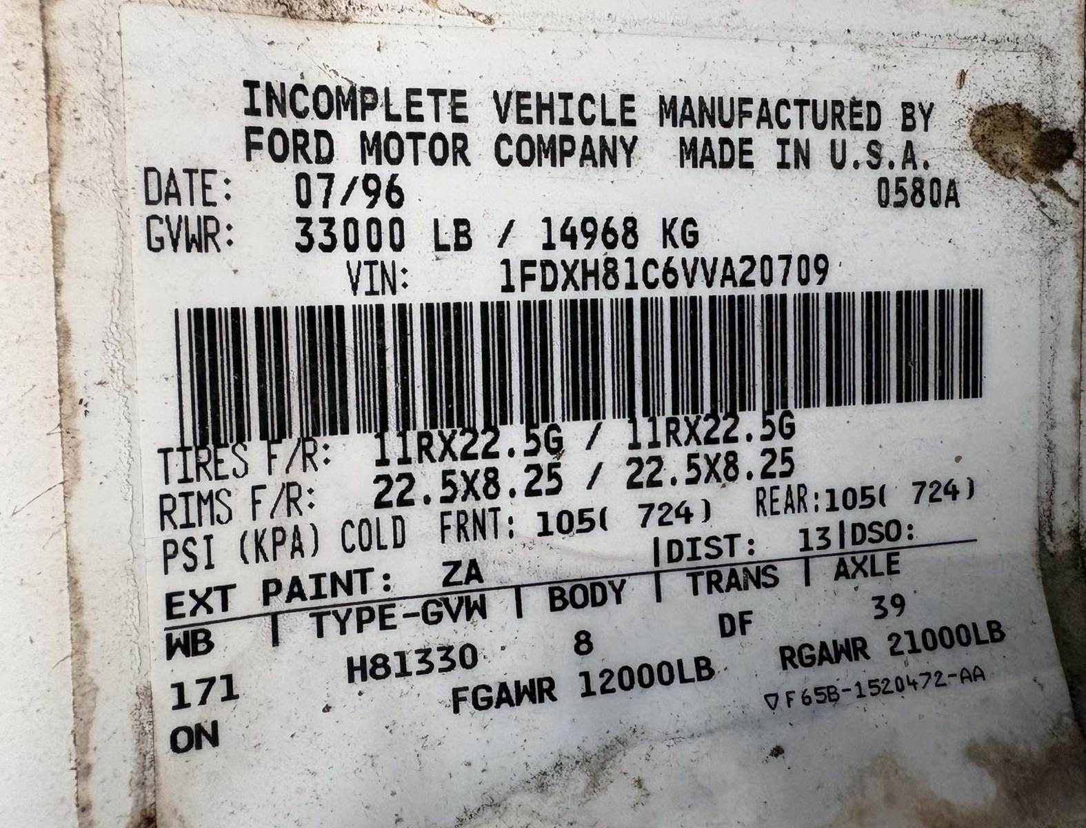 1997 FORD F8000 Flatbed Dump Truck - stake bed, 175 HP Cummins B5.9L diesel engine, 161,230 miles, manual transmission, 12,000 lb front, 21,000 rear, 33,000 GVWR, spring suspension, 171" WB, 18 ft bed, Financing available [REF: PU115]