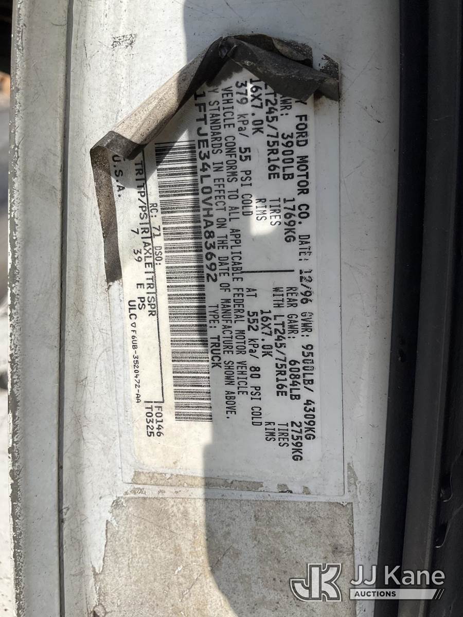 1997 Ford Econoline E350 Cargo Van, s/n 1FTJE34L0VHA83692, 8-cyl gas, 4-Speed Automatic, A/C, with tow package, (Exempt from Odometer Disclosure - Reads 103,544 miles) (Runs & Moves) (Overdrive Not Working, Passed Smog) (Bidding Restricted to Licensed Vehicle Dealers Only), This is a Titled Item NOTE: This unit is being sold AS IS/WHERE IS via Timed Auction and is located in Jurupa Valley, CA. Inspection & preview days for this unit are the 2 business days prior to the first day of items closing for this auction, item is located at 4510 Muth Way Jurupa Valley, CA 92509 and hours of operations are 8a-4p. For pre-sale questions, please contact please contact Office Staff @ (310) 353-7140. Dealer License Number 45696. (Buyer is responsible for removal. Assistance by consignor or JJ Kane Auctions is not assured.)