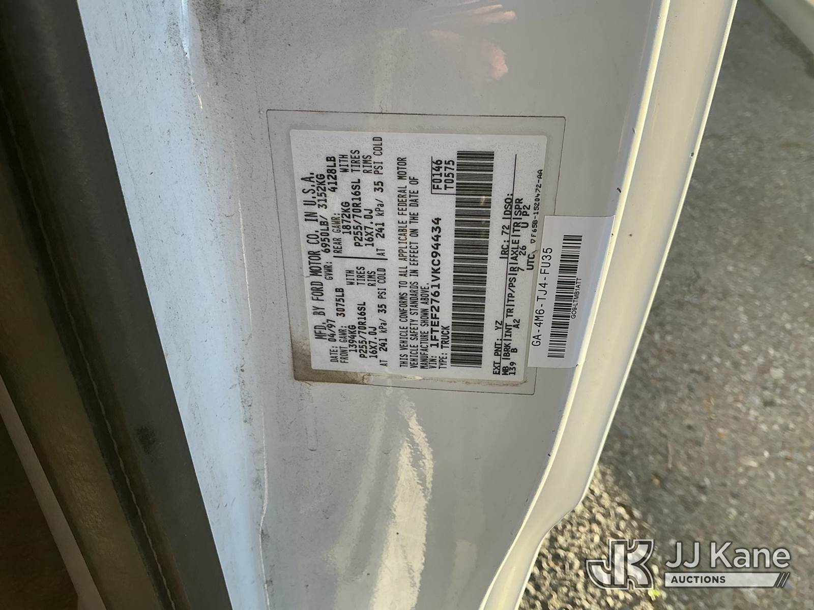 1997 Ford F-250 Pickup Truck, s/n 1FTEF2761VKC94434, 4.6L V8 SOHC 16V RWD, GAS, A/C, (Exempt from Odometer Disclosure - Reads 131,382 miles) (Runs & Moves)(Interior Dashboard Broken, Gear Switch Cracked ) This is a Titled Item NOTE: This unit is being sold AS IS/WHERE IS via Timed Auction and is located in Dixon, CA. Inspection & preview days for this unit are the 2 business days prior to the first day of items closing for this auction, item is located at 8668 Sparling Ln Dixon, CA 95620 and hours of operations are 8a-4p. For pre-sale questions, please contact JJ Kane Staff at (707) 678-8060 (dixon@jjkane.com). Dealer License Number 45696. (Buyer is responsible for removal. Assistance by consignor or JJ Kane Auctions is not assured.)