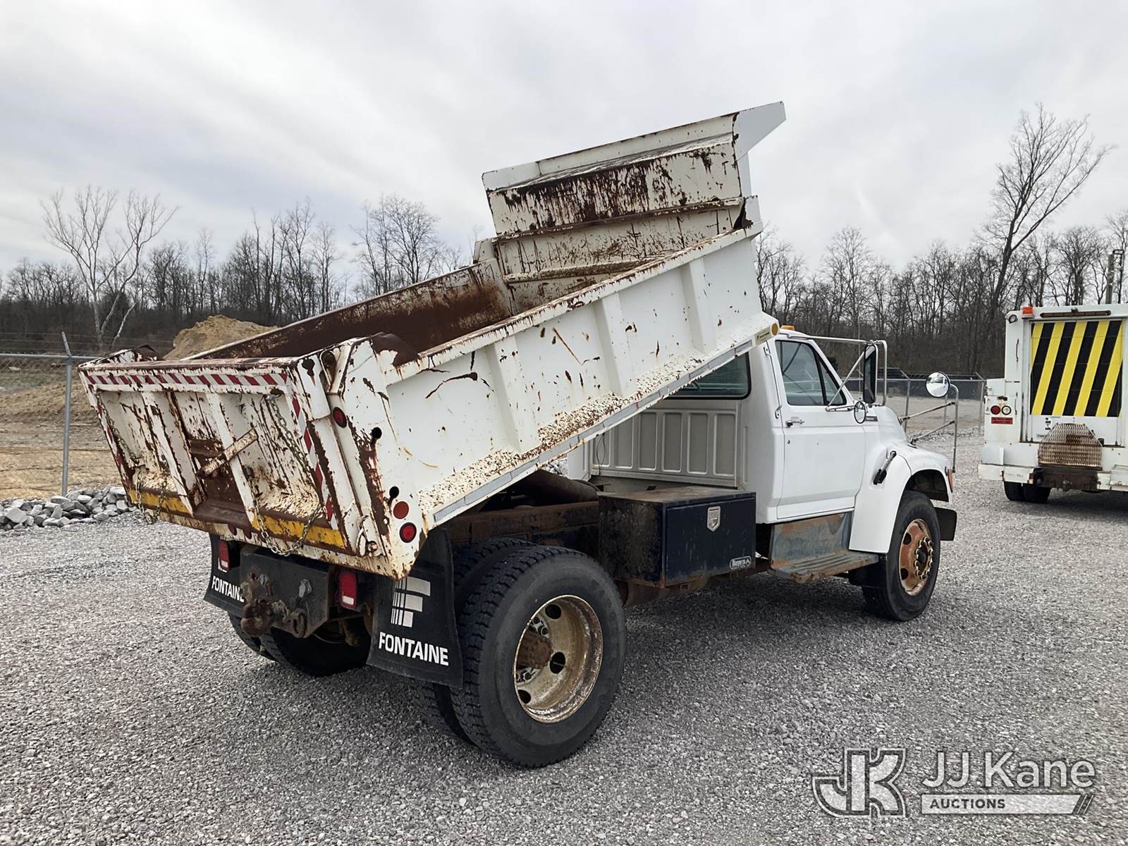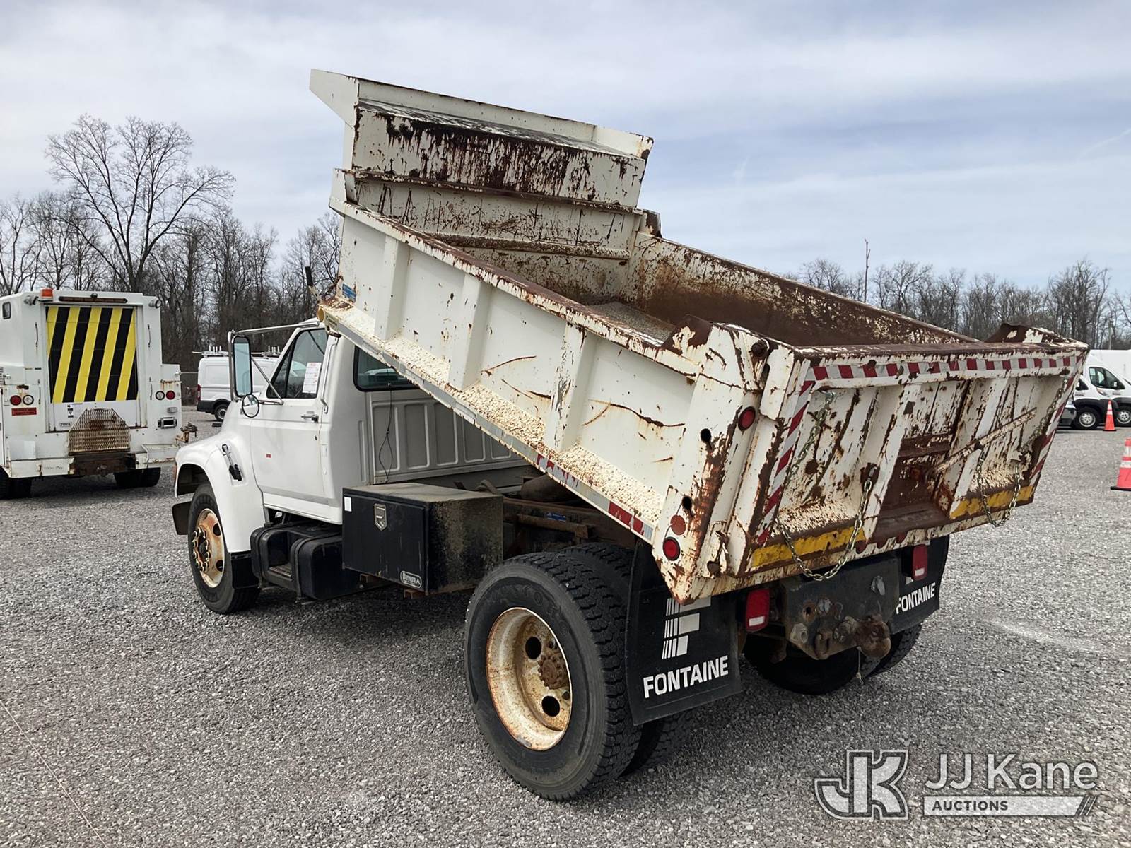 1997 Ford F800 Dump Truck, 5.9L diesel, 4X2, 6-spd, A/C, with 5-7 yard bed, (Exempt from Odometer Disclosure - Reads 38,489 miles) (Runs, Moves & Dump Operates) (Rust Damage) This is a Titled Item NOTE: This unit is being sold AS IS/WHERE IS via Timed Auction and is located in Verona, KY. Inspection & preview days for this unit are the 2 business days prior to the first day of items closing for this auction, item is located at 2841 Verona-Mudlick Rd Ste B Verona, KY 41092 and hours of operations are 8a-4p. For pre-sale questions, please contact Office Staff @ (502) 612-5080. Auctioneer Michael Whitebread / License # 256617. (Buyer is responsible for removal. Assistance by consignor or JJ Kane Auctions is not assured.)