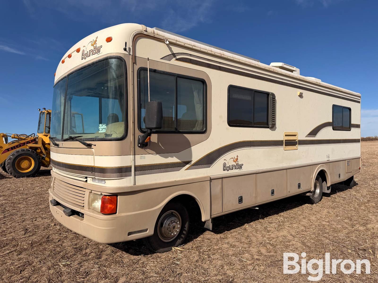 1997 Ford Fleetwood Bounder S/A Motor Home, 592 Hrs Showing, 54,628 miles showing, Title Will Be Marked Miles Exempt, GVWR: 17000 Lbs., GCWR: 20500 Lbs., Front GAWR: 6000 Lbs., Rear GAWR: 11000 Lbs., Dry Weight: 13851 Lbs., Carrying Capacity: 3149 Lbs., Capable Of Carrying 100-Gallons Of Fresh Water, 7.5L V8 Gasoline Engine, Automatic Transmission, Rear Wheel Drive, Spring Suspension, Firestone Ride Rite, LT235/85R16 Tires, Rear Duals, Onan MicroLite 4000 Gasoline Generator, Fresh/Gray/Black Tanks, A&E Systems Awning (Was Too Windy Day Of Listing To Operate), Hydraulic Jacks, A/C, Heater, Aux. Start, Cruise Control, Electric Step, Generator Start Button Up Front, Kenwood CD Player, Uniden Pro 510XL CB, Flatscreen TVs, DVD Player, Solar Charge Controller, RV Model 80 Electrical Control Center, Magnetek 12 Volt Fuse Panel, Kitchen Sink, Panasonic Microwave, Water Heater, Magic Chef Gas Stove Top w/Oven, Electric Or Gas Controlled Refrigerator/Freezer, Bathroom With Toilet/Sink/Tub/Shower, Closet Space, Queen Size Bed, Living Area With Couch Made Into Bed, VIN: 3FCMF53G9VJA09260