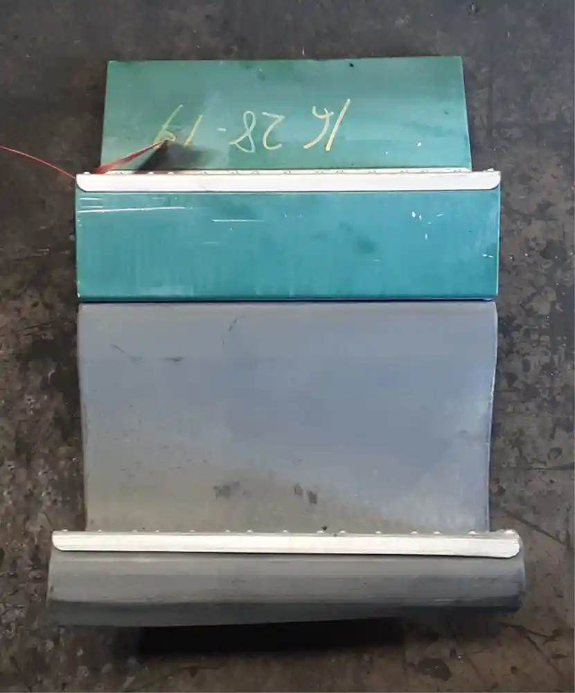 1997 Freightliner FLD120 Passenger Side RH Intermediate Tank Fairing, 19.5"L. P/N 22-40042-001, 22-39449-001. Small Areas Of Exposed Fiberglass, Scrapes On Bottom Section.