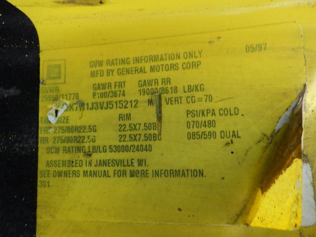 VIN: 1GDK7H1J3VJ515212 Diesel, Automatic, Air Brakes, A/C, Heat, Trailer Brake Controller, Utility Boxes, Lumber Rack, Dual Fuel Tanks, Vinyl Interior, 15' Bed, Safety Light, Aux Fuel Tank, AM/FM, Work Lights, Tow Package, Spring Suspension, Aux Fuel Tank w/ Pump, 500lbs Crane, Hoses/Reels, 275/80R27.5 Tires, CB Radio, GVWR 19,000lbs, Odometer Reading: 131,255 Disclaimer: Mileage and hours are visually observed and not verified.