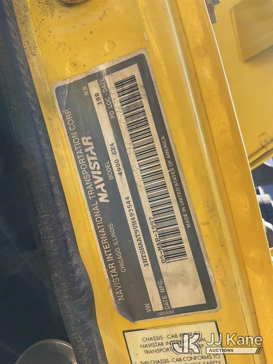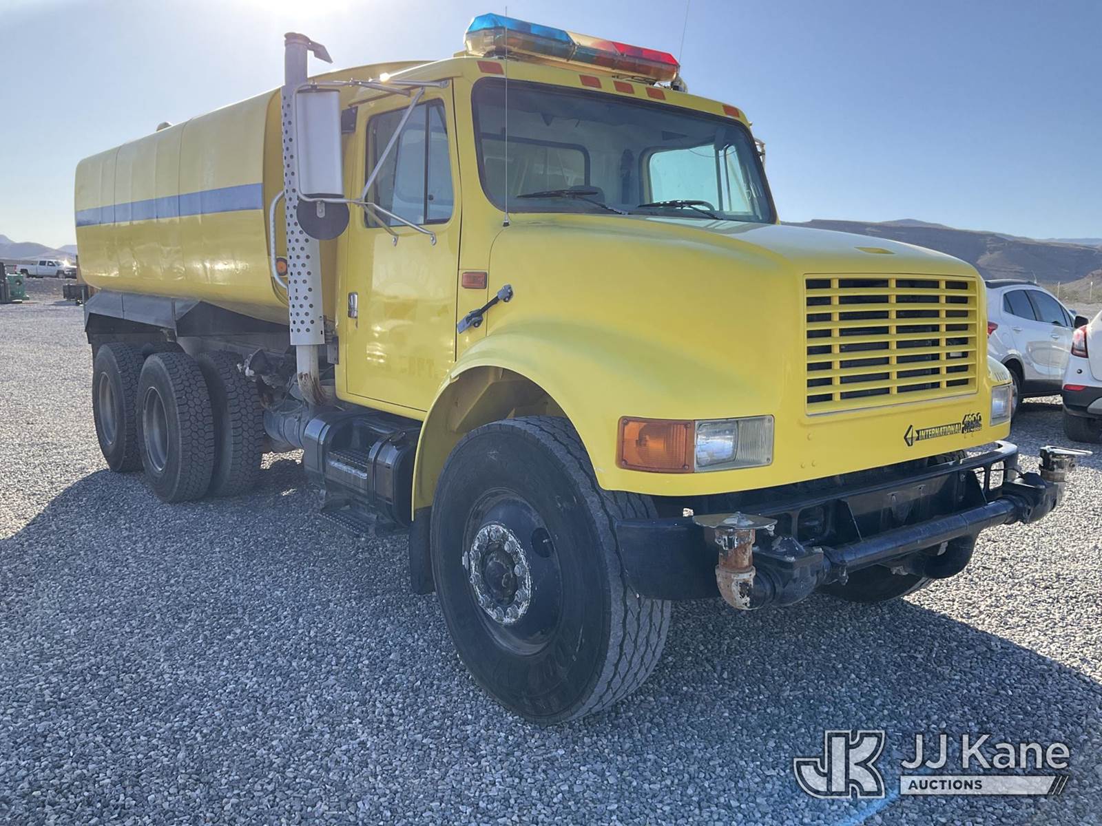 1997 International 4900 T/A Tank Truck, 14.0L diesel, 6X4, Auto, A/C, with 4000 gal. tank, front, rear, side sprayers, (Exempt from Odometer Disclosure - Reads 139,256 miles) (Runs & Moves) (Jump To Start, Air Leaks) (Reads 12,156 hours) This is a Titled Item NOTE: This unit is being sold AS IS/WHERE IS via Timed Auction and is located in Las Vegas, NV. Inspection & preview days for this unit are the 2 business days prior to the first day of items closing for this auction, item is located at 14655 Grand Valley Pkwy Las Vegas, NV 89165 and hours of operations are 8a-4p. Titles executed exactly as bidder registered. Ensure your name and/or business name and address in JJ Kane and/or ProxiBid is correct before bidding. For pre-sale questions, please contact Office Staff @ (801) 519-0123 and provide sale date and lot number. Las Vegas Dealer License Number DLR000053086 / OHV000053094. (Buyer is responsible for removal. Assistance by consignor or JJ Kane Auctions is not assured.)