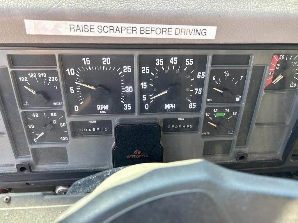 Location: ISA Yard: Merrill, WI Navistar A250 6 Cylinder Turbo Diesel Engine, Allison Automatic Transmission, Differential Lock, PTO, Approx. 10' Box Length, 96" Width, Approx. 11' Front Plow, 12' Underbody Plow, Rear Salt/Sand Spreader, Cruise Control, Heat/AC, Radio, Air Ride Seat, 11R22.5 Tires VIN: 1HTGBAARXVH458605
