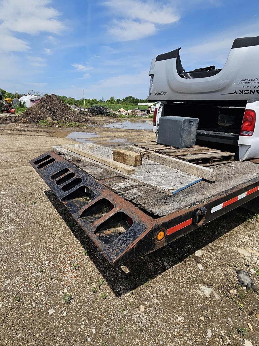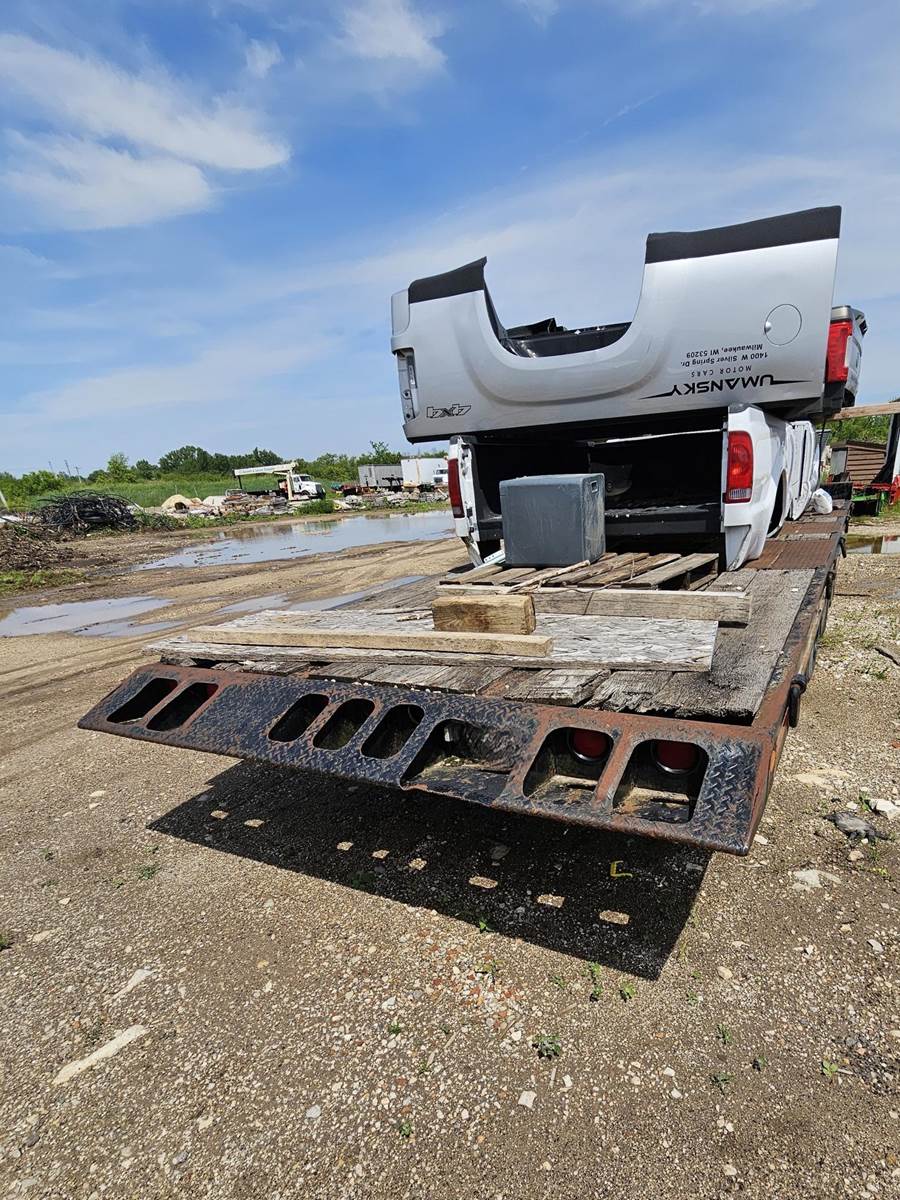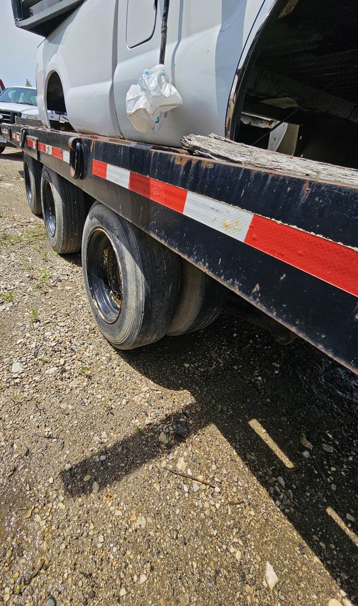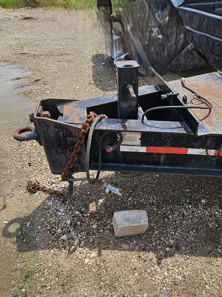 20' X 96" dual axle, steel bed tag trailer,. Good ST235/85/R56 tires. Pintel hitch. Lock down straps, new bearings