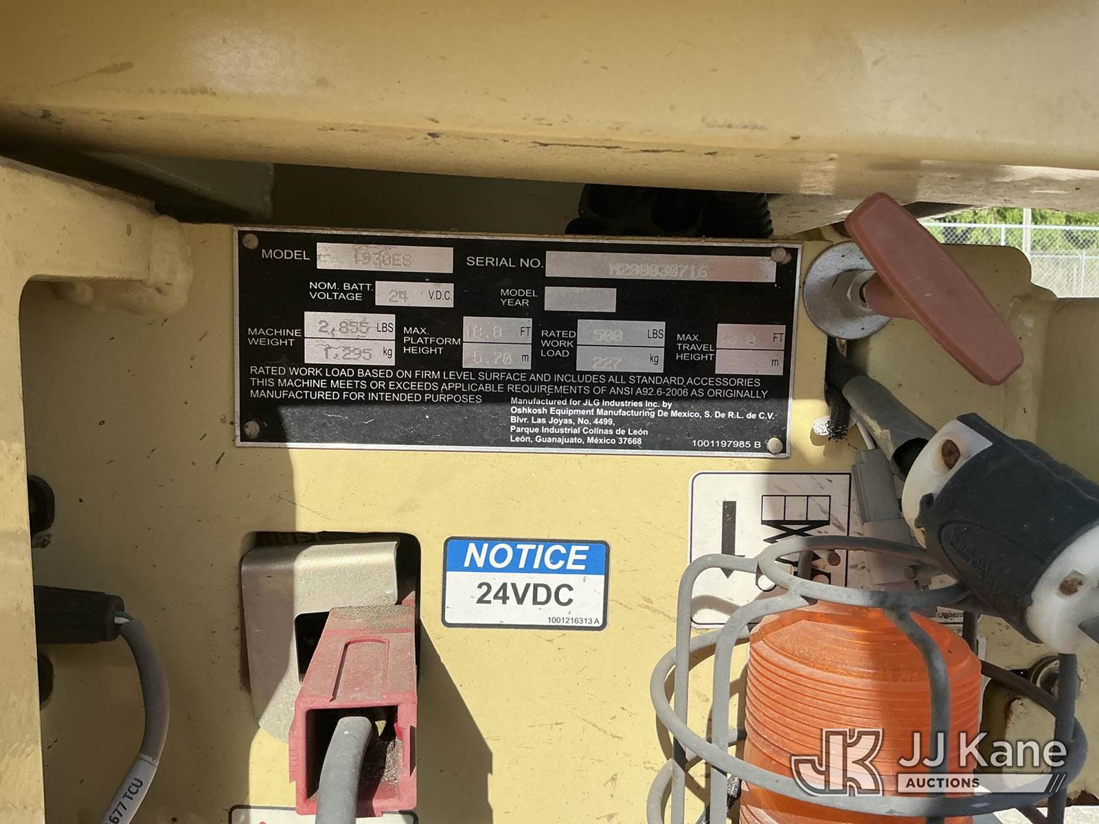 1997 JLG 1930ES Self-Propelled Scissor Lift, s/n M200030716, electric, Hydrostatic, (Runs, Moves, Operates) (Reads 181 hours) NOTE: This unit is being sold AS IS/WHERE IS via Timed Auction and is located in Thonotosassa, FL. Inspection & preview days for this unit are the 2 business days prior to the first day of items closing for this auction, item is located at 11720 N US 301 Thonotosassa, Fl 33592 and hours of operations are 8a-4p. For pre-sale questions, please contact Office Staff @ (813) 986-2485. (Buyer is responsible for removal. Assistance by consignor or JJ Kane Auctions is not assured.)