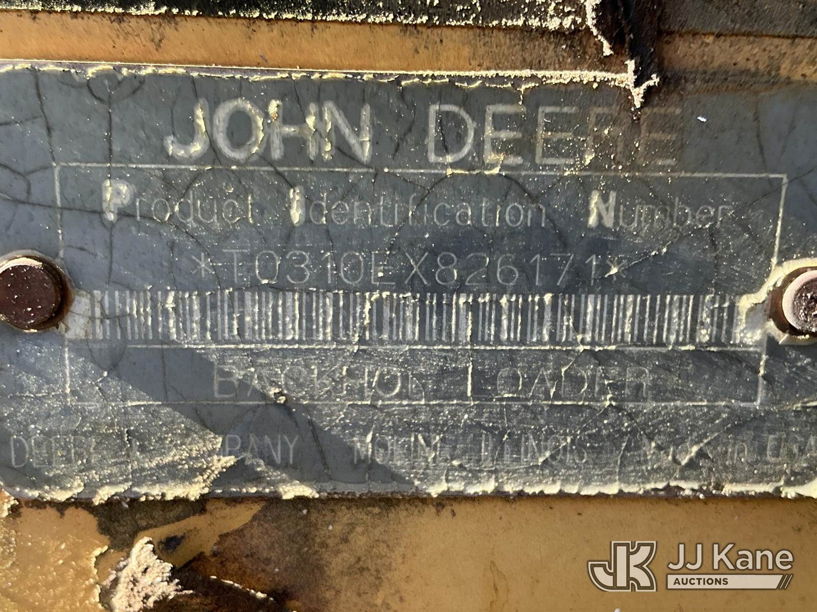 1997 John Deere 310E Tractor Loader Backhoe, s/n T0310EX826171, J.D. diesel, Shuttle, with GP bucket, 4ft 7in stick, 16 in. digging bucket & ROPS w/canopy, (Runs & Moves ) (Hyd Leaks, Rear Boom Conditions Unknown ) (Reads 3,358 hours) NOTE: This unit is being sold AS IS/WHERE IS via Timed Auction and is located in China Grove, NC. Inspection & preview days for this unit are the 2 business days prior to the first day of items closing for this auction, item is located at 820 E NC Hwy 152 China Grove, NC 28023 and hours of operations are 8a-4p. For pre-sale questions, please contact Office Staff @ (704) 674-1113. (Buyer is responsible for removal. Assistance by consignor or JJ Kane Auctions is not assured.)