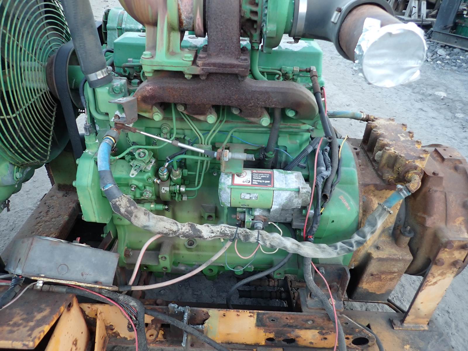 1997 John Deere 4045TF150 diesel engine, turbocharged, HIGH HORSEPOWER SPEC, 115 HP at 2500 RPM rating, same as later 4045TF250 (TF250) and other industrial engines, mechanical fuel system, Lucas CAV injection pump, showing 991 hours when removed from a drilling unit. Comes w/ radiator, skid, battery box, control panel, hydraulic clutch & other accessories as pictured. COMPLETE POWER UNIT W/ ACCESSORIES AS PICTURED. ENGINE RUNS EXCELLENT, SEE TEST RUN VIDEO. VERY RARE ENGINE -- HIGH HORSEPOWER W/ CAV INJECTION PUMP -- CONTACT US FOR HELP WITH INTERCHANGE ON THIS ONE, WE CAN HELP !!