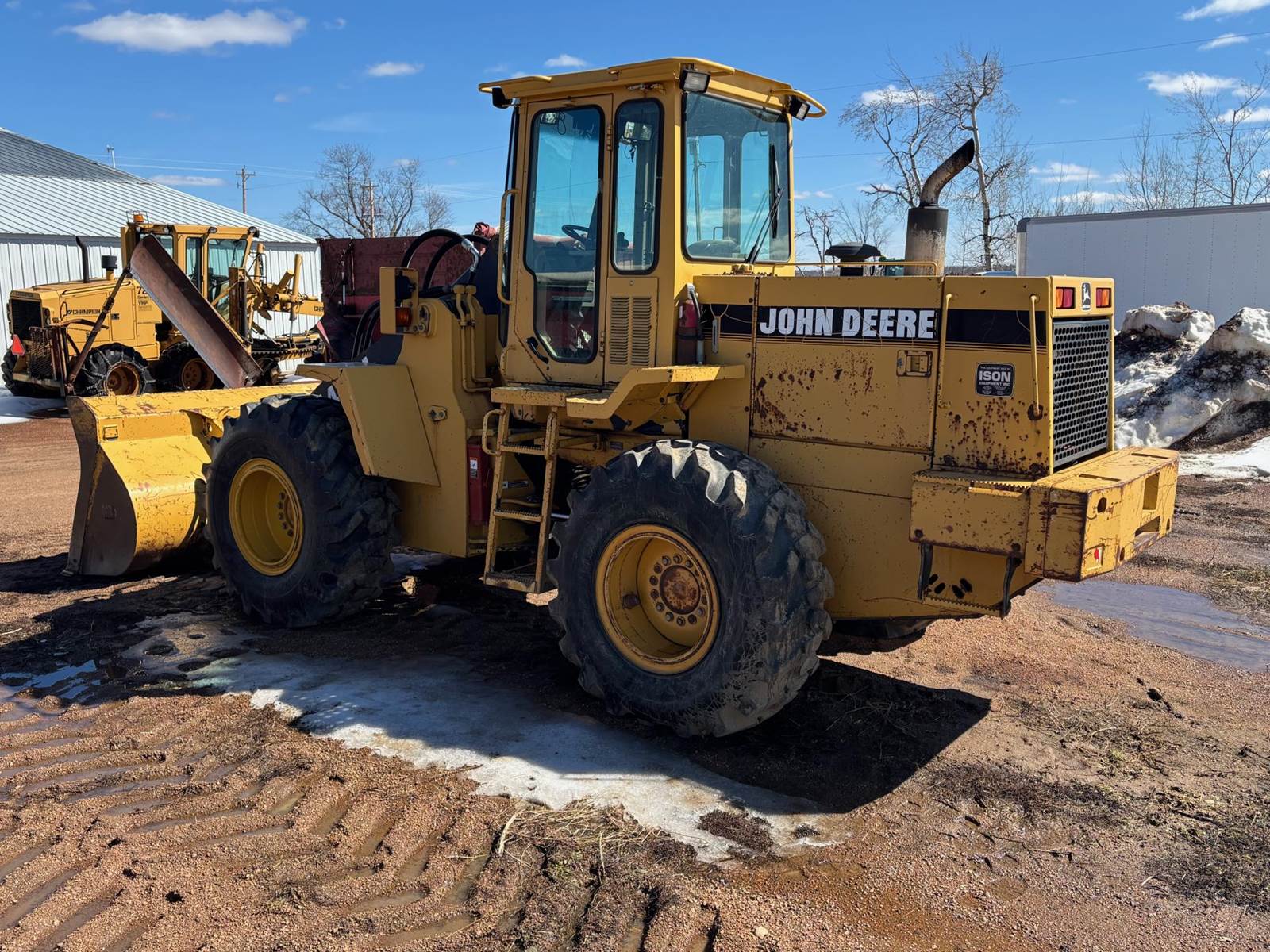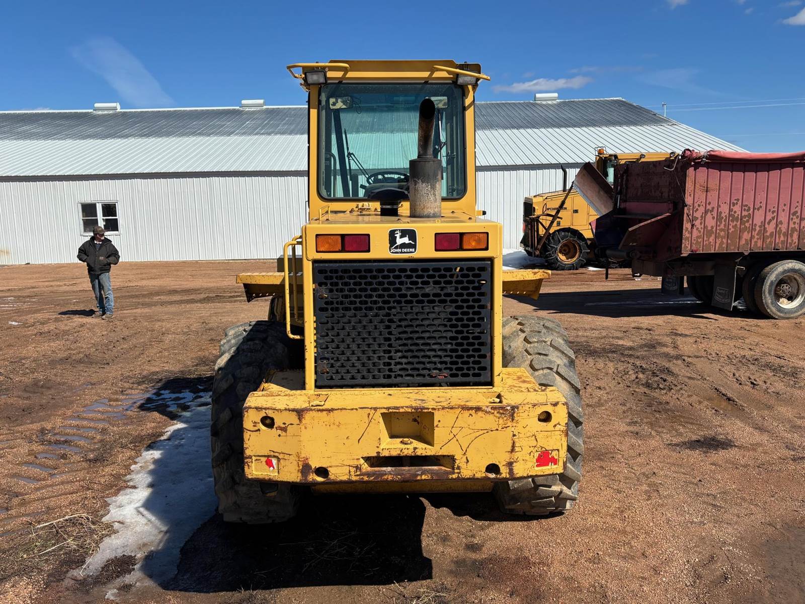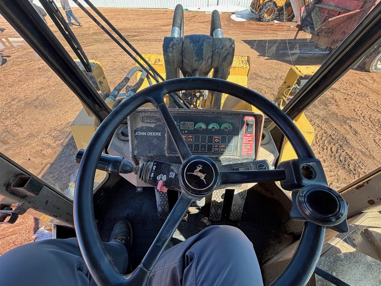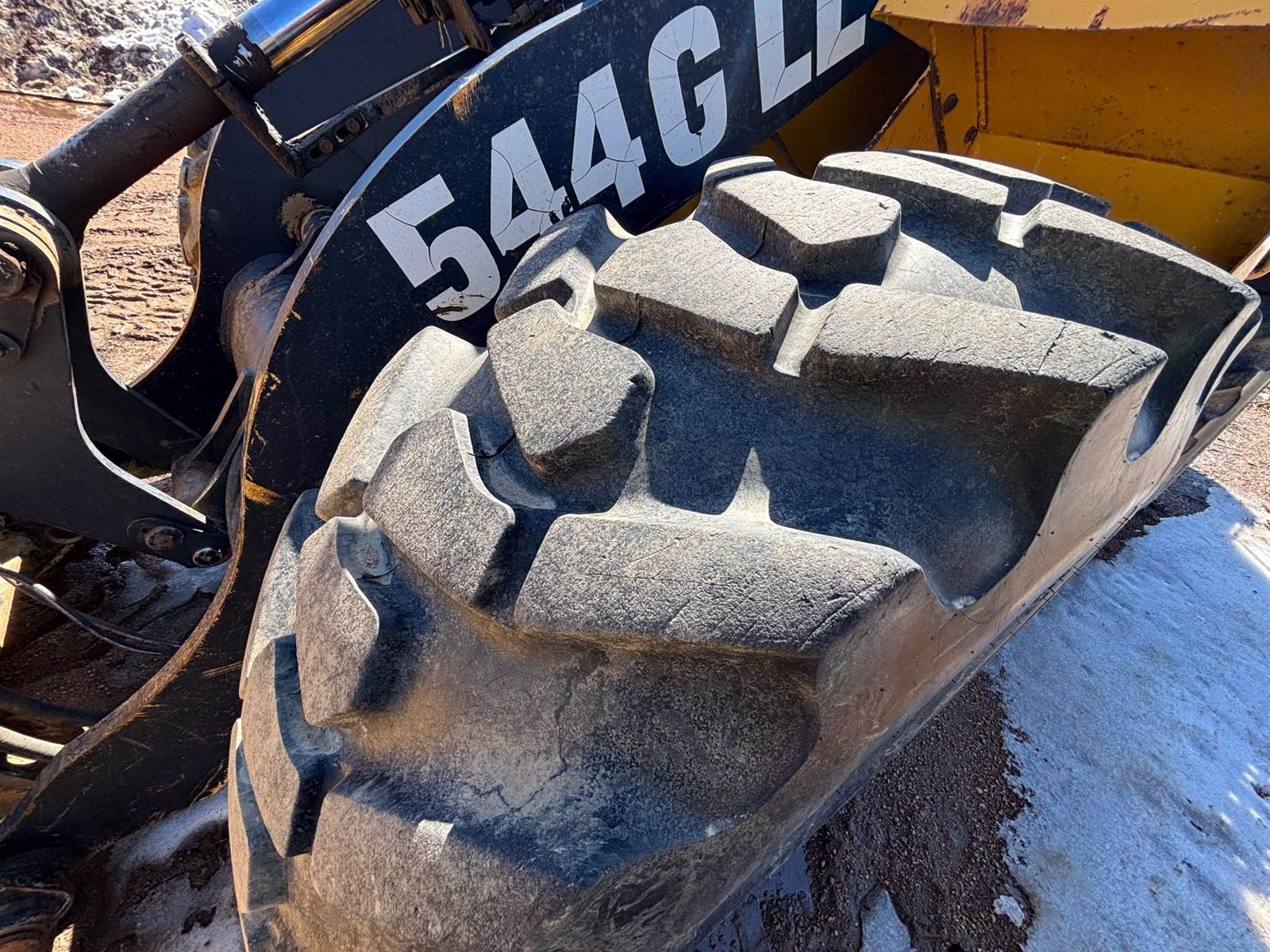 1997 John Deere 544G LL Wheeled Loader, 8,500 estimated hours (meter incorrect). The following items have maybe 600 hours and repairs completed at dealer; tires, bushings, pins, ram seal, center pivot. The front arms and bucket are tight. Quick connect and Auxiliary hydraulics. There is a crack in front windshield a pops out of 4th gear. Engine: 6-cylinder John Deere 6059T Diesel, 120-125 hp. Operating Weight: Approx. 23,246–25,000 lbs., Bucket Capacity: 2.5 – 3.0 cu yd (standard). Power shift, 4 forward gears, 3 reverse gears. Hydraulic System: ~36 GPM, 2,900 PSI, 2-function loader controls. Tires: 17.5-25 or 20.5R25. Runs well and starts in the coldest weather.