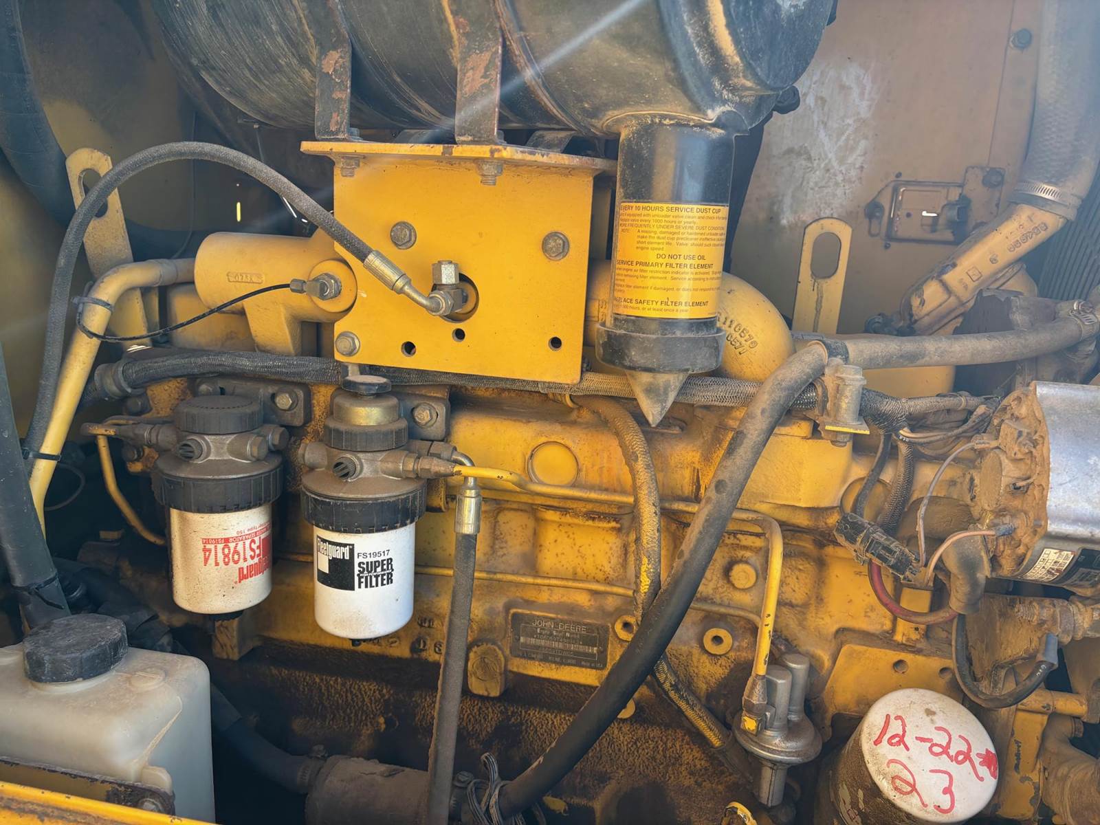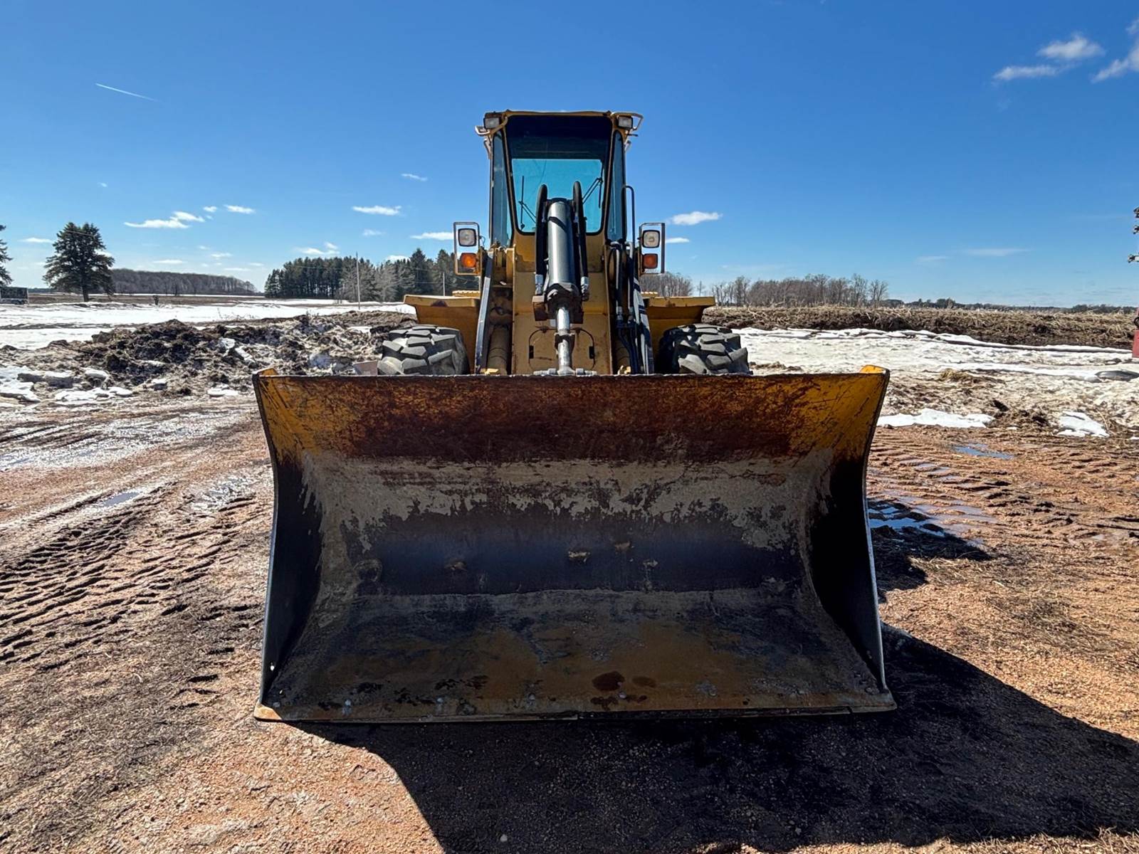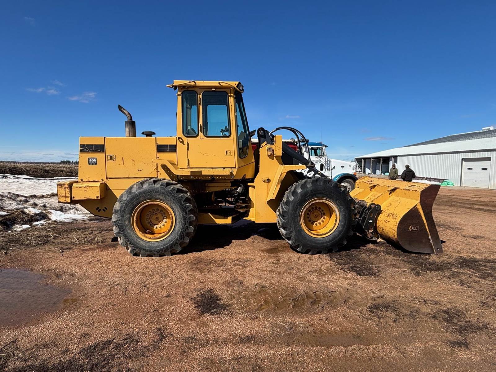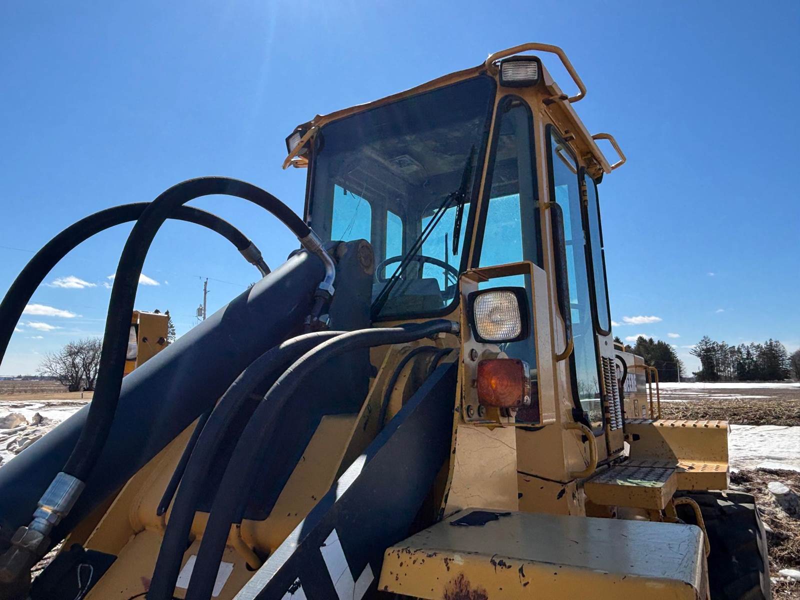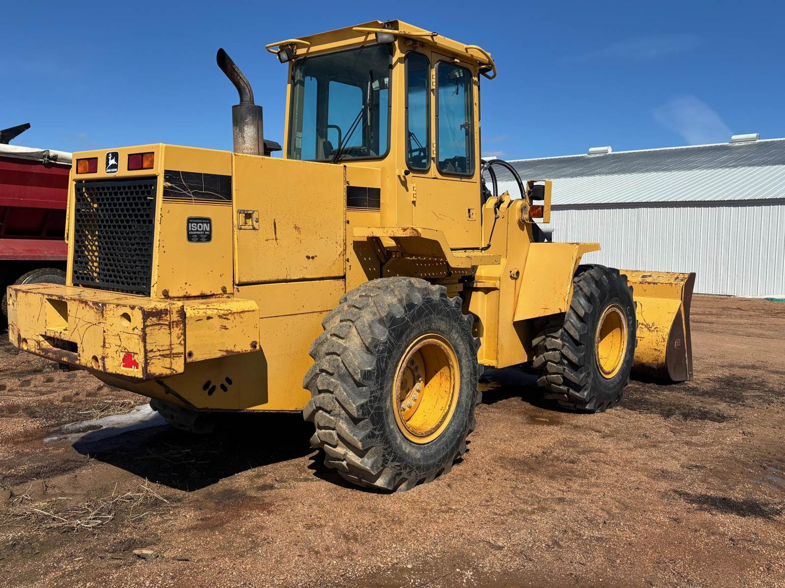 1997 John Deere 544G LL Wheeled Loader, 8,500 estimated hours (meter incorrect). The following items have maybe 600 hours and repairs completed at dealer; tires, bushings, pins, ram seal, center pivot. The front arms and bucket are tight. Quick connect and Auxiliary hydraulics. There is a crack in front windshield a pops out of 4th gear. Engine: 6-cylinder John Deere 6059T Diesel, 120-125 hp. Operating Weight: Approx. 23,246–25,000 lbs., Bucket Capacity: 2.5 – 3.0 cu yd (standard). Power shift, 4 forward gears, 3 reverse gears. Hydraulic System: ~36 GPM, 2,900 PSI, 2-function loader controls. Tires: 17.5-25 or 20.5R25. Runs well and starts in the coldest weather.