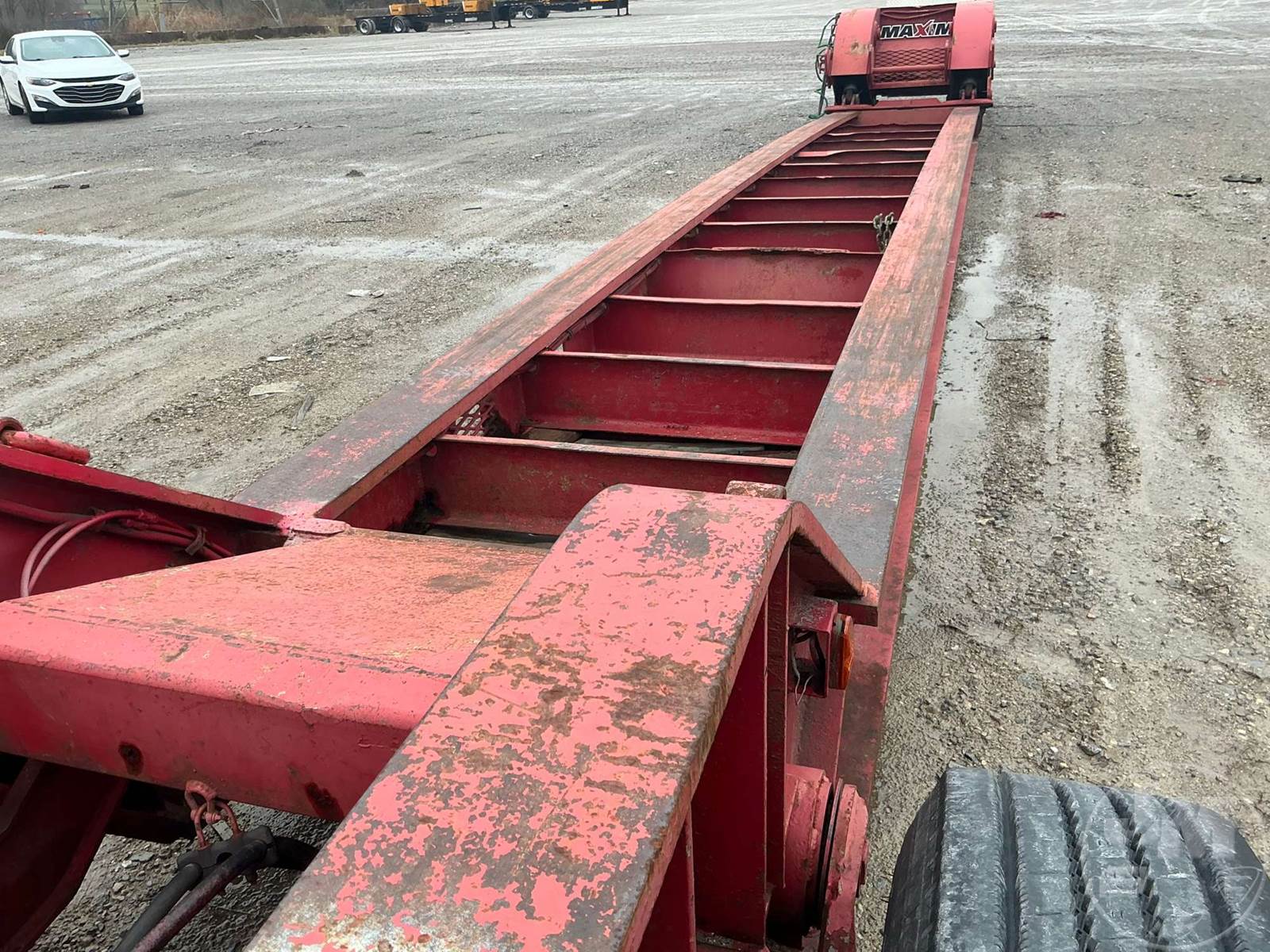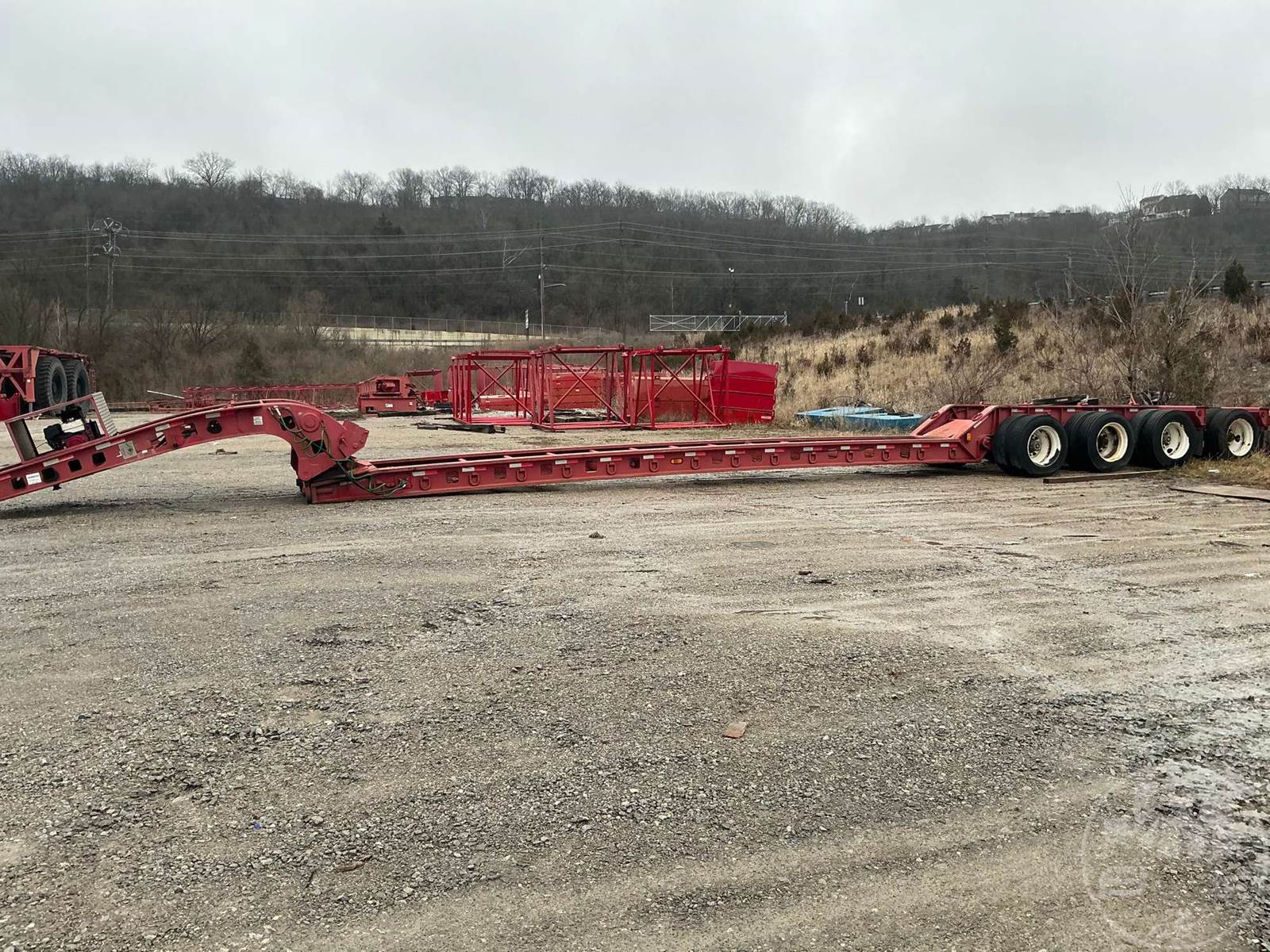 HYDRAULIC RGN LOWBOY TRAILER, BEAM TRAILER, 50 TON, 4 AXLE, GAS POWER PACK, 8'6" WIDE, AIR RIDE SUSPENSION, STEEL DISC WHEELS, 255/70R22.5 TIRES, 27'8" MAIN DECK***LOCATED IN WILDER, KY***