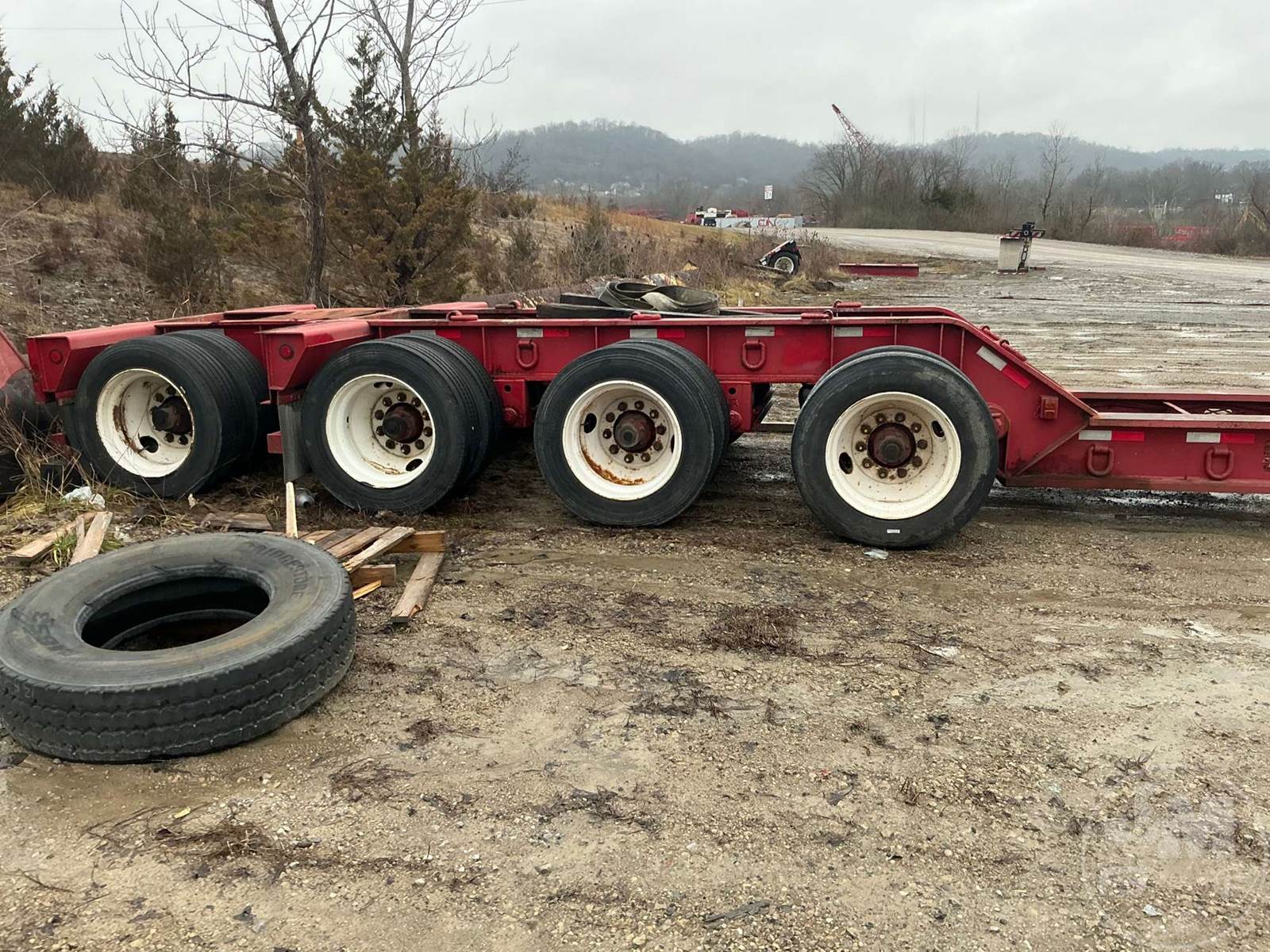 HYDRAULIC RGN LOWBOY TRAILER, 55 TON, 4 AXLE, FLIP 4TH AXLE, OUTRIGGERS, DECK LENGTH 26', 9' WIDE, AIR RIDE SUSPENSION, WOOD DECKING,...
