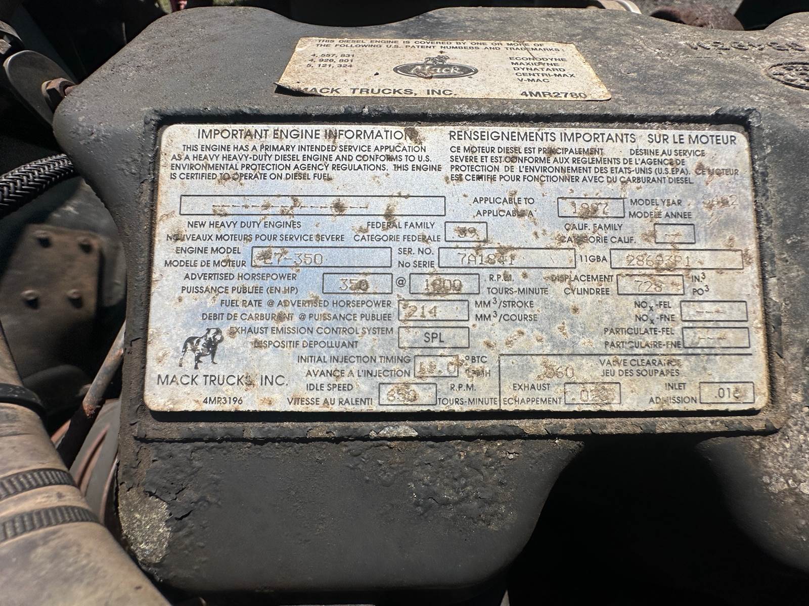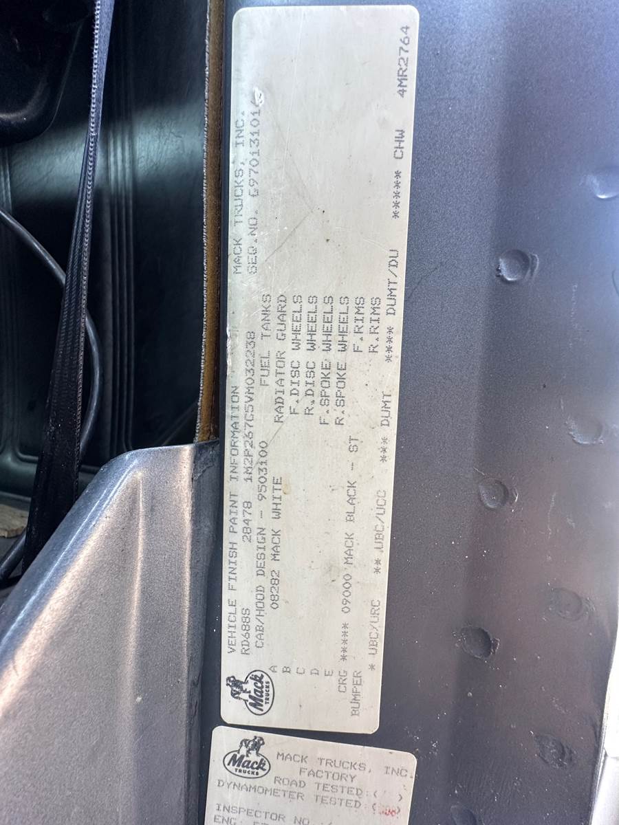 1997 MACK RD688SX Tandem Dump - 350 HP Mack E7-350 Diesel, Mack 13-speed manual transmission, 598,076 miles (46,874 hrs), double frame,...