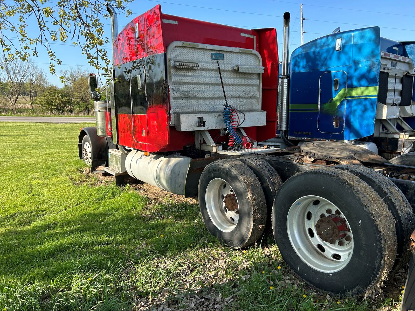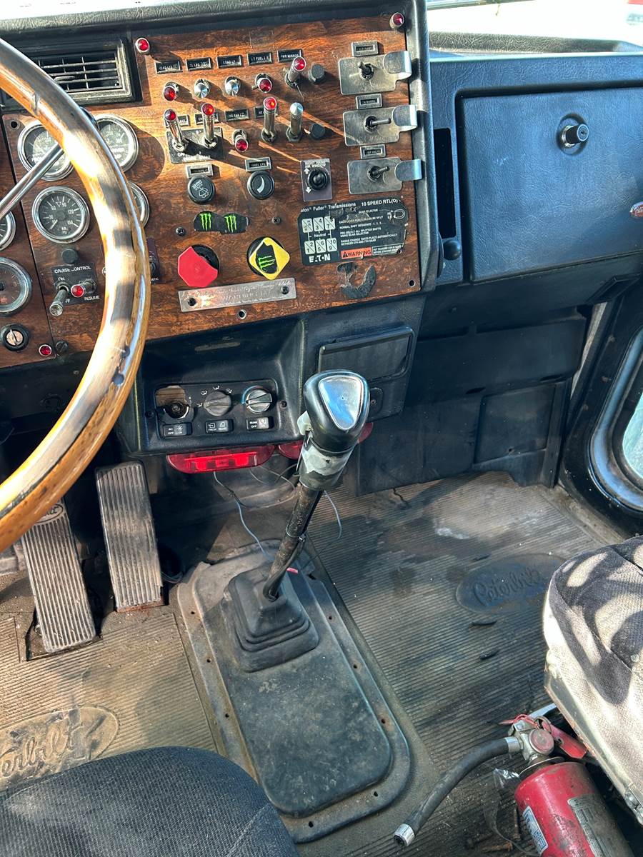 1997 Peterbilt 379 Long Nose, Cummins 14.0-L Inline-6 Diesel Engine, Eaton Fuller 10 Speed Manual Transmission, Engine Brake, Differential Lock, Fifth Wheel Lock, Merritt Aluminum Chain Rack, GVWR 50,000#, Front 12,000#, Rears 19,000#, Wheelbase 260 Inches, Cruise Control, Power Window, Tilt Steering Wheel, AC/Heater, Stereo, Mid Roof Sleeper, Double Bunks, Paperwork And Maintenance Records Available, Drives as it should, Truck isn't currently in use, Pre-Elog, Paper logs