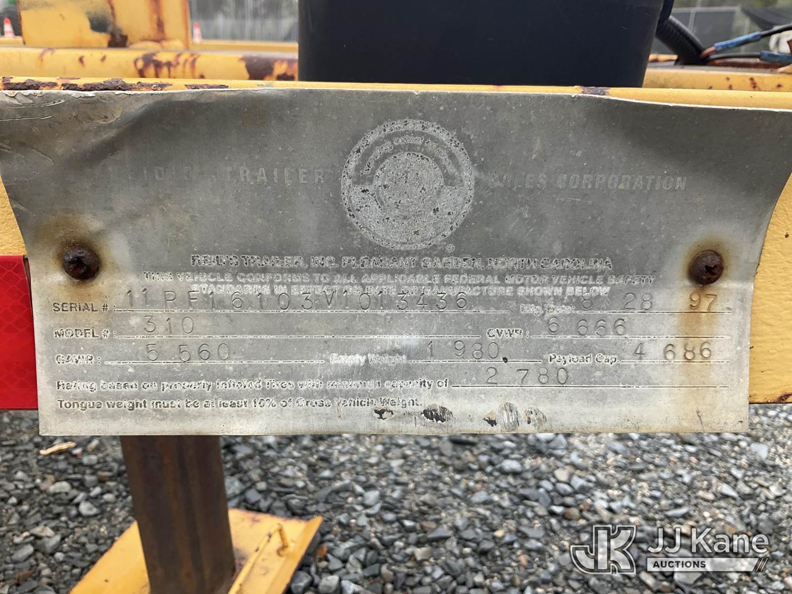 1997 Reid Material/Reel Trailer, with 10 ft level deck between wheels, (Duke Unit) This is a Titled Item NOTE: This unit is being sold AS IS/WHERE IS via Timed Auction and is located in China Grove, NC. Inspection & preview days for this unit are the 2 business days prior to the first day of items closing for this auction, item is located at 820 E NC Hwy 152 China Grove, NC 28023 and hours of operations are 8a-4p. For pre-sale questions, please contact Office Staff @ (704) 674-1113. (Buyer is responsible for removal. Assistance by consignor or JJ Kane Auctions is not assured.)
