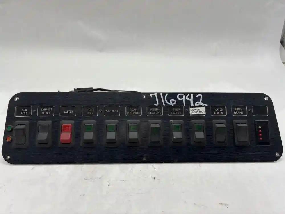 (Used) 1997 Spartan Advantage, MISCELLANEOUS DASH SWITCHES- Controls: Abs Test, Exhaust Brake, Master, Lightbar, Vig Wag, Rear Warning, Inter Sectors, Step Light, Lower Light Bar, Heated Mirror, Siren Brake, Material: Plastic, For more information about this item, give us a call. We ship Worldwide! (CRG HEAVY TRUCK PARTS) 929 W PULASKI HWY, ELKTON, MD 21921, Material: Plastic
