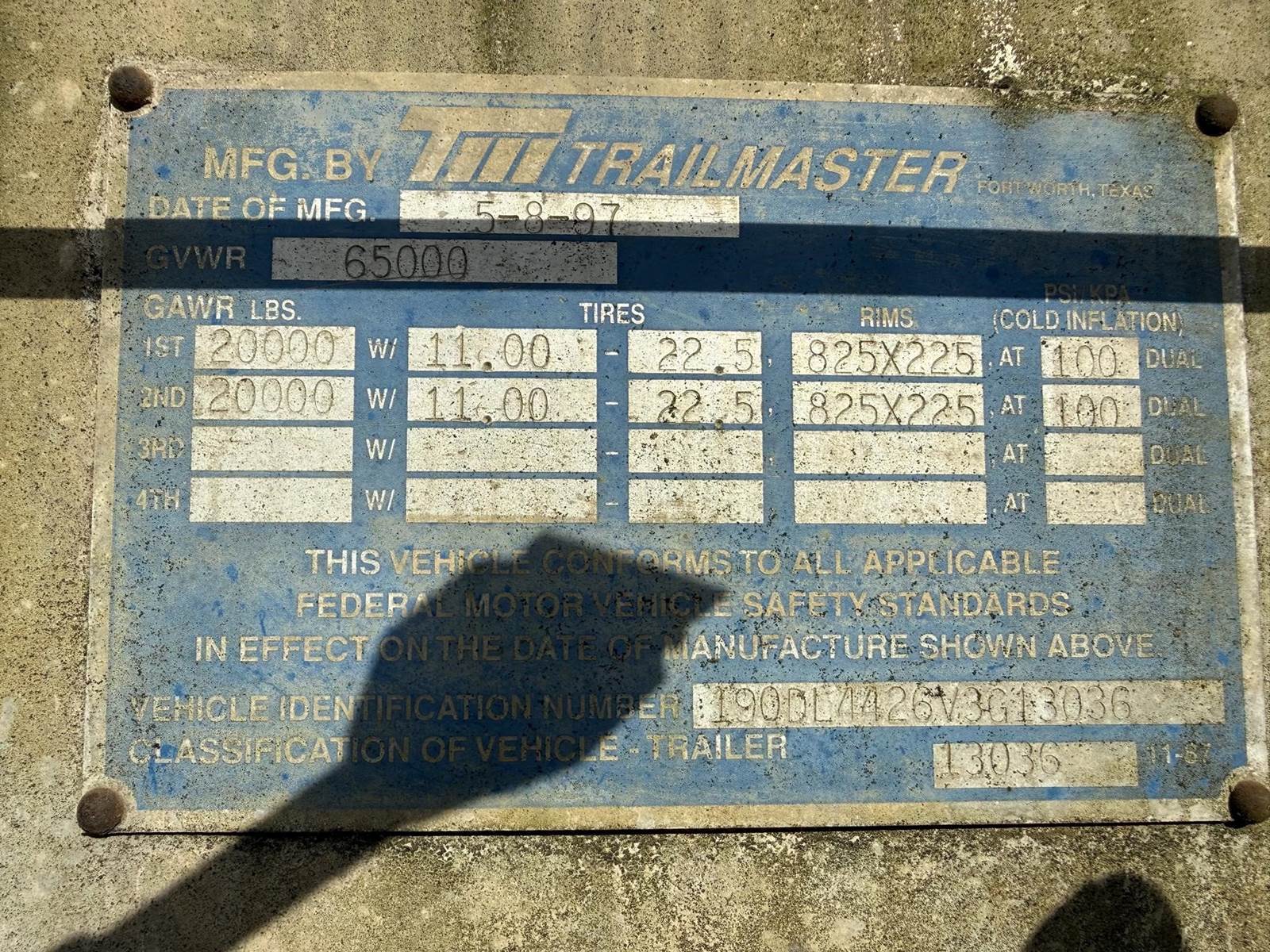 1997 Trailmaster 8400 gallon Vacuum Tank Trailer