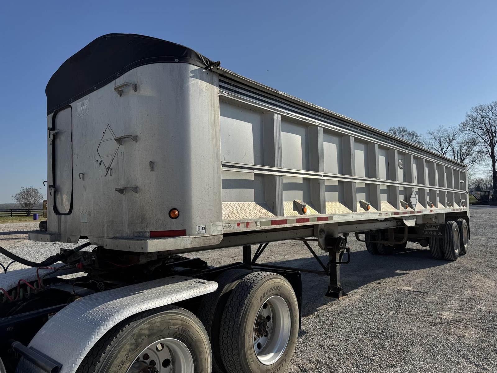 2008 40 FT MONTONE END DUMP TRAILER JUST IN!! 9 FT 2 INCH CLEARANCE, COAL/ GRAIN GATE, 11R24.5, MANUAL TARP, FRAMELESS, SINGLE LINE HOSE,...