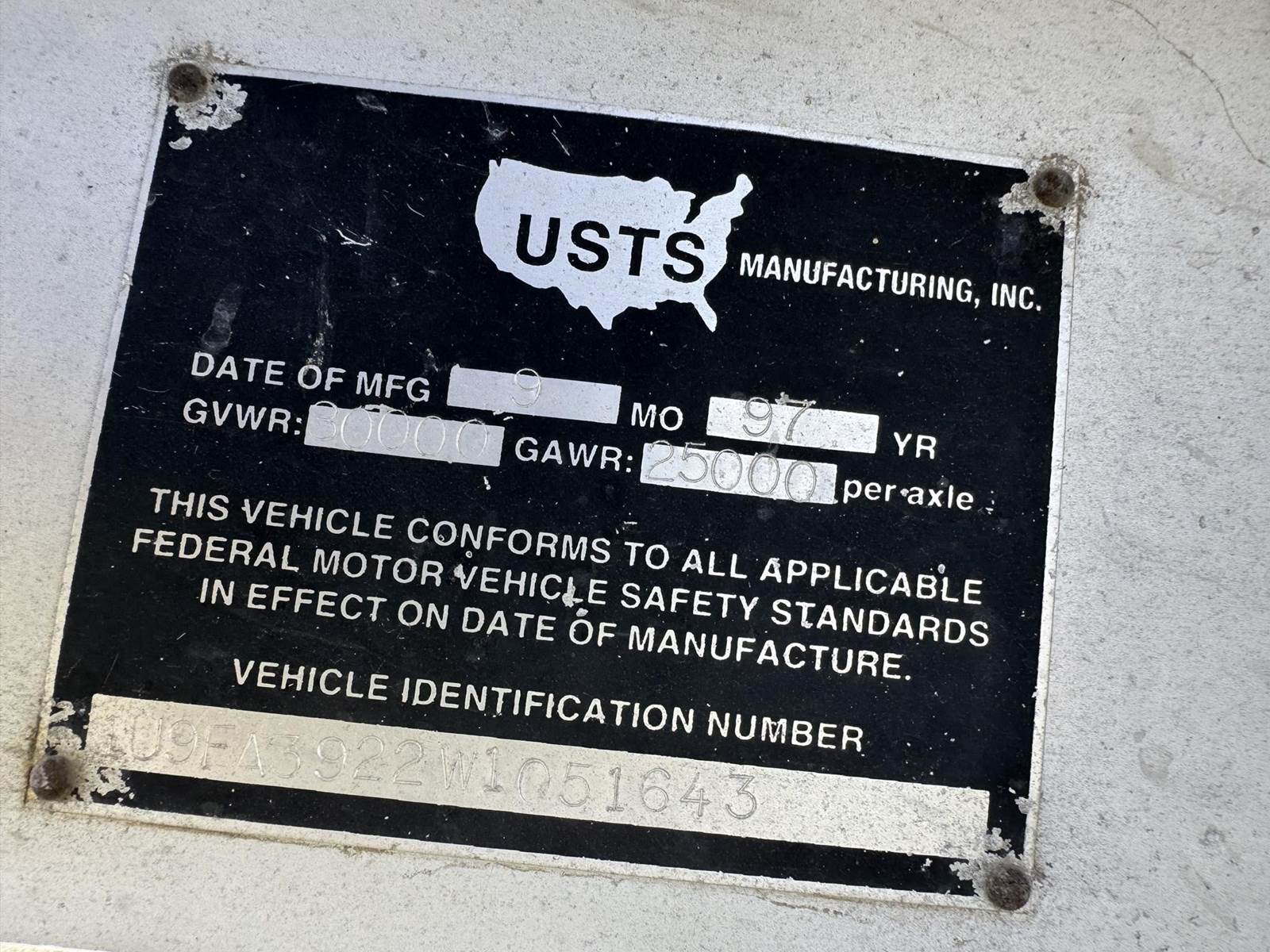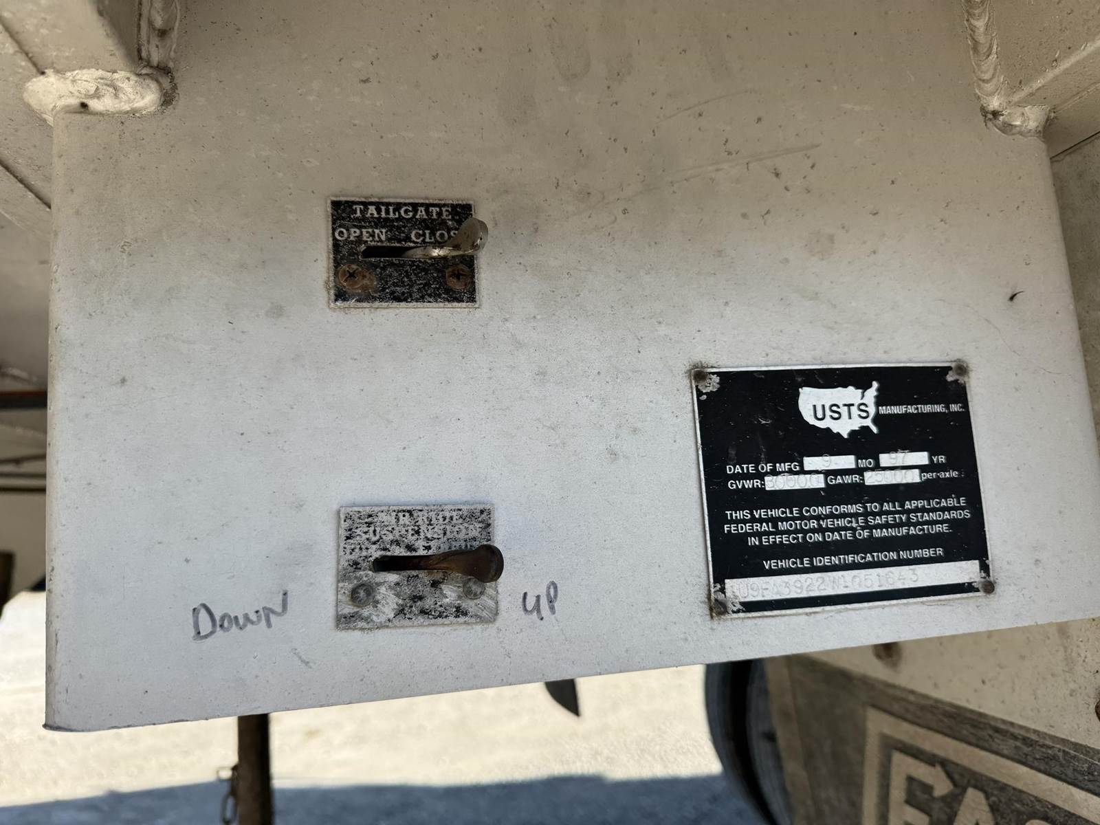 1997 USTS 39FT END DUMP ALUMINUM TRAILER, MANUAL ARP, FRAMELESS TRAILER, REAR LIFT AXLE, AIR GATE, 11R24.5..